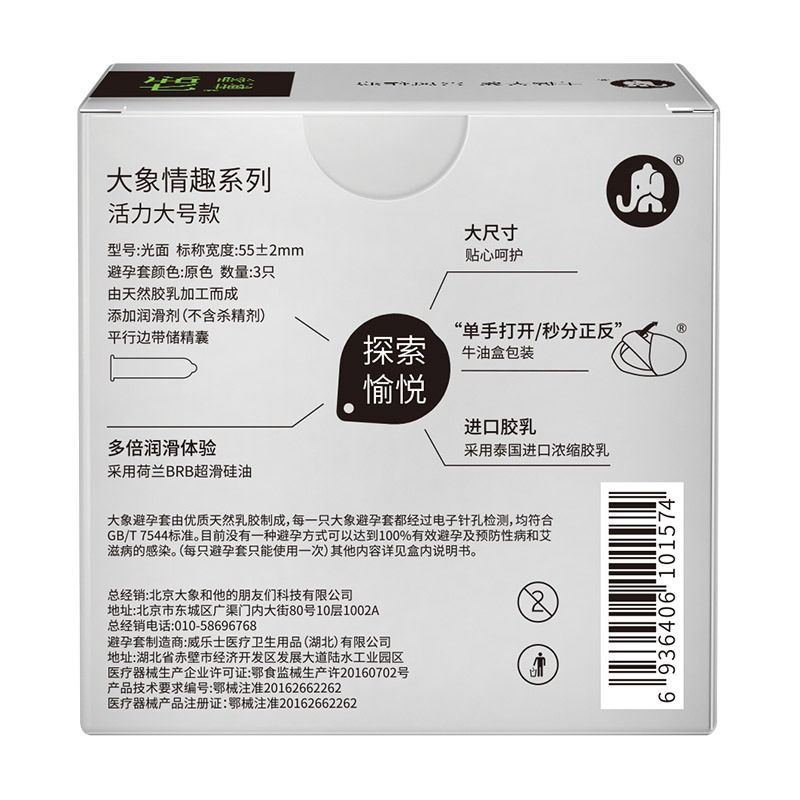【55mm】大象活力大号3只装55mm超薄男用大号安全套大号避孕套套
