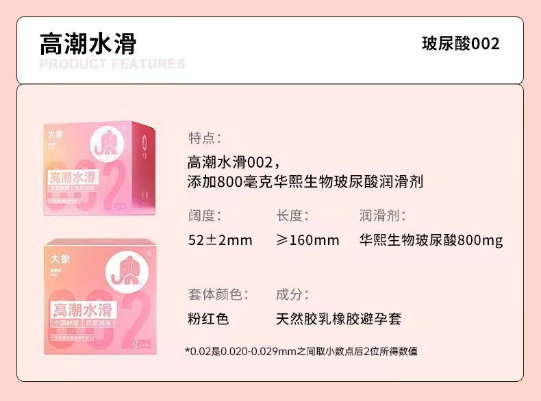 【高潮玻尿酸】大象高潮水滑玻尿酸避孕套1只装无硅油免洗安全套套内含快感液成人情趣计生用品