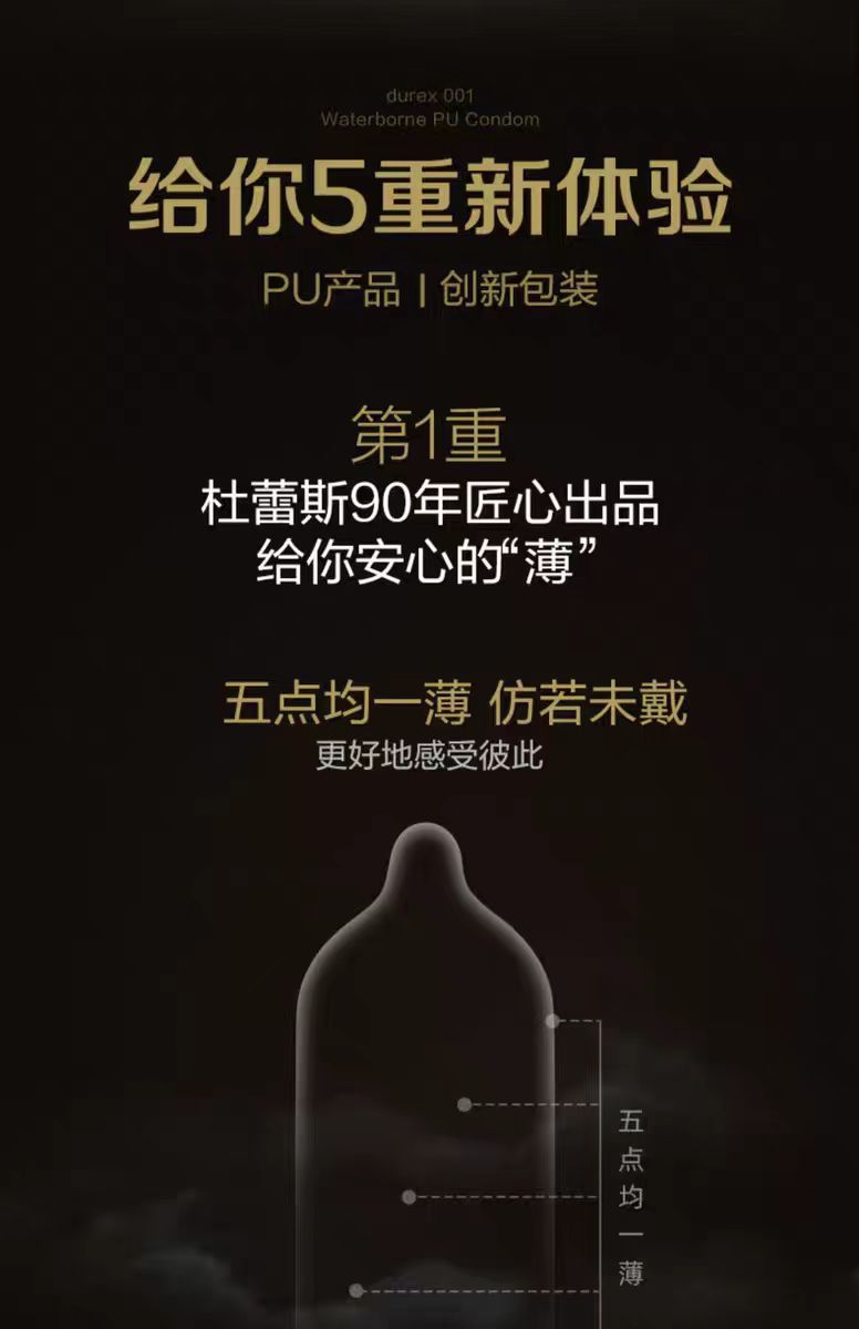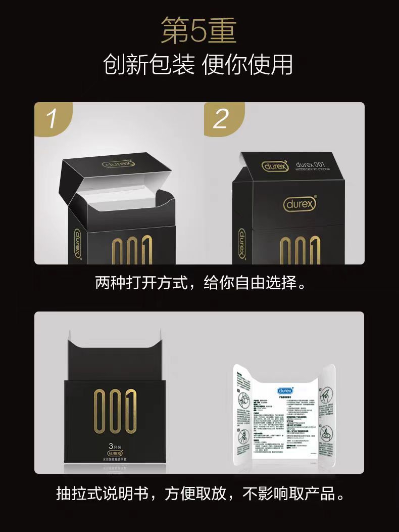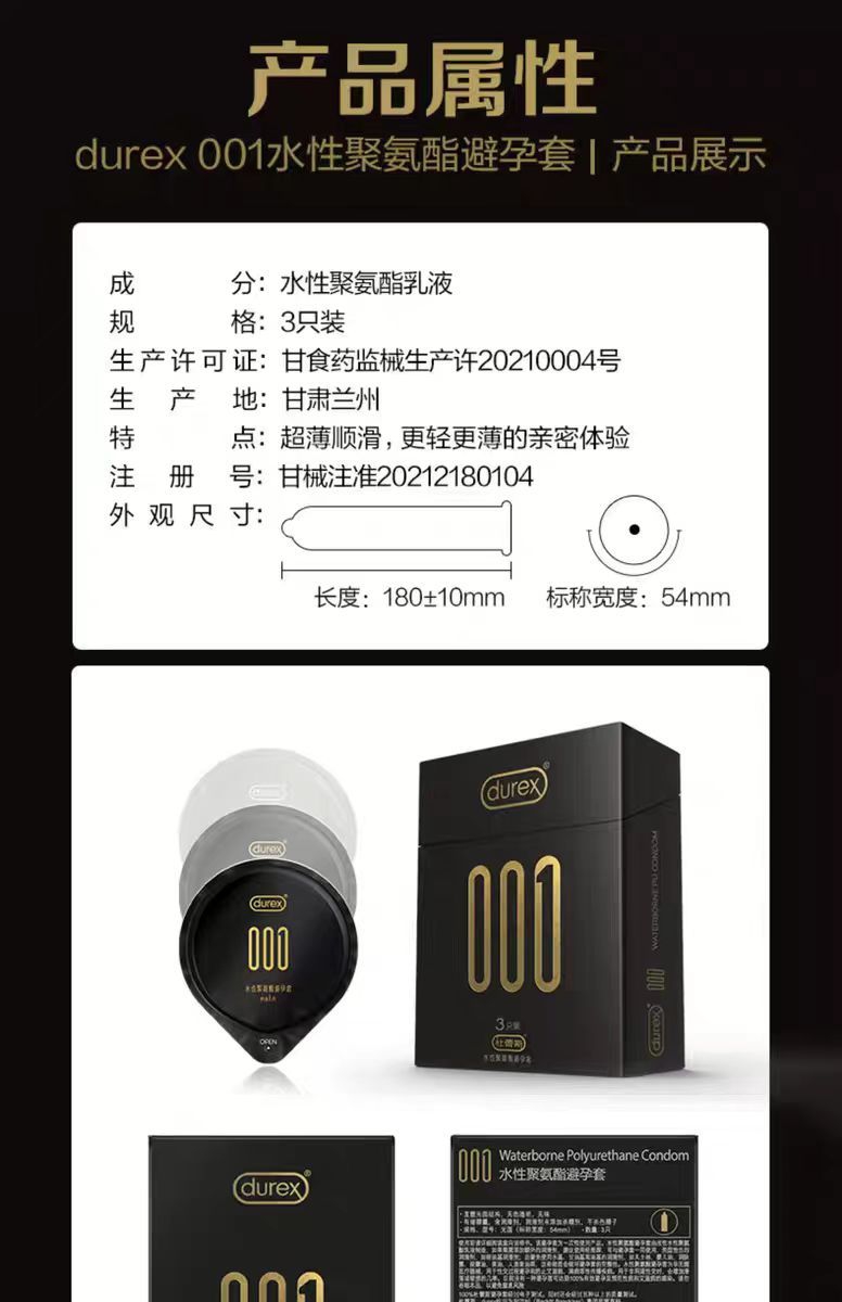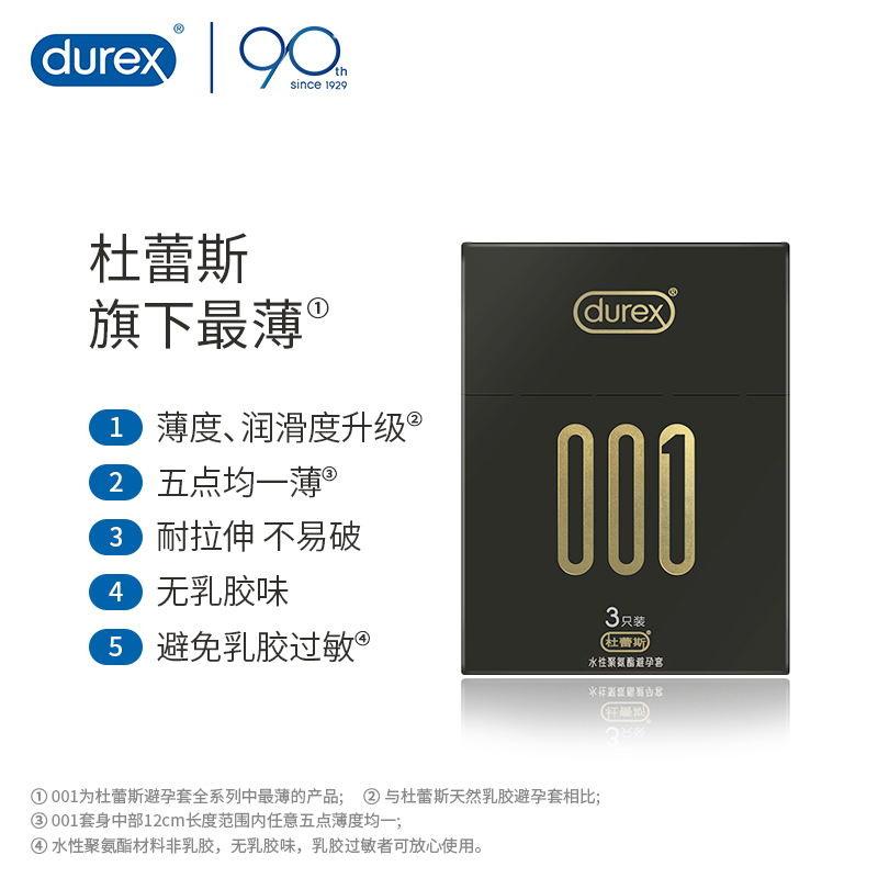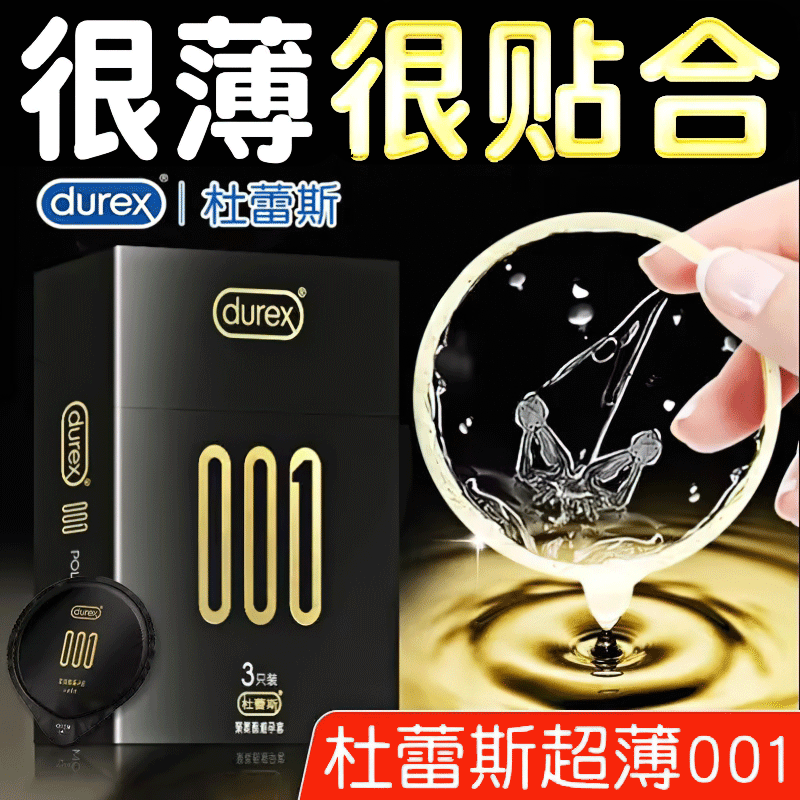 【杜蕾斯001】水性聚氨酯避孕套3只装超薄型男用情趣安全套保险套套