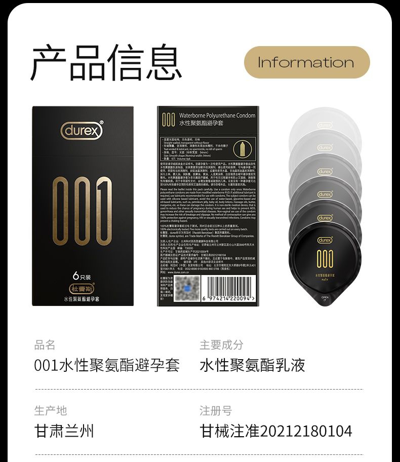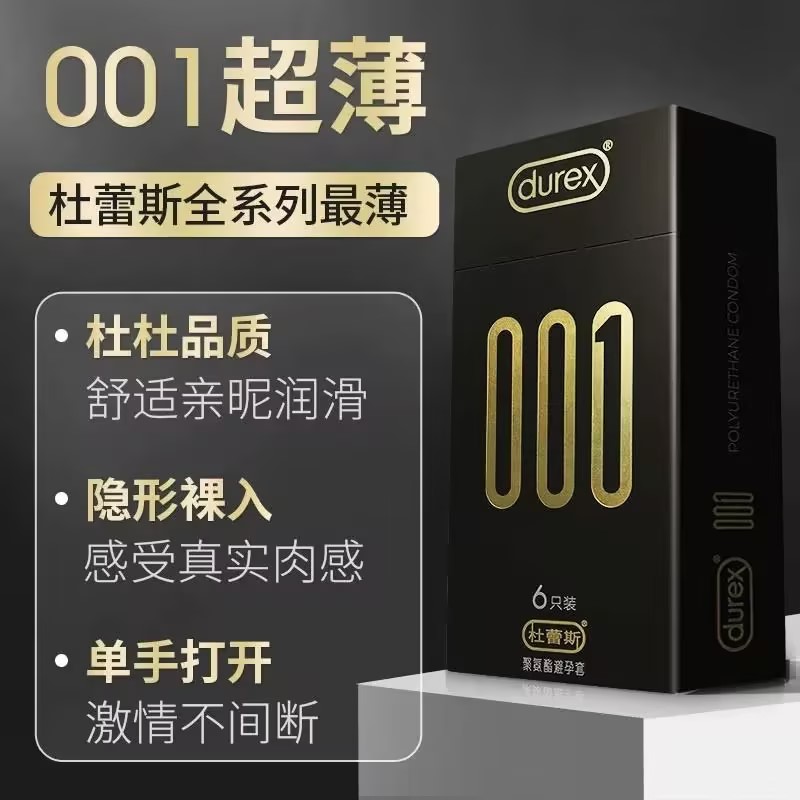 【高端套套】杜蕾斯001水性聚氨酯避孕套6只装超薄型男用情趣安全套保险套套