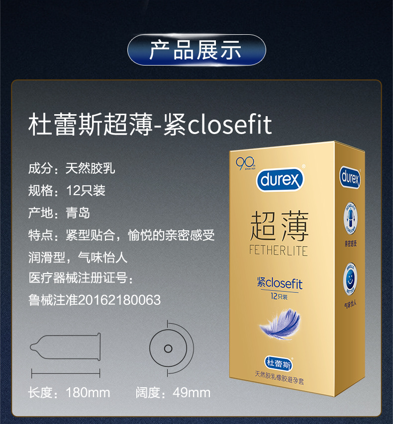 【紧致贴合】杜蕾斯紧型超薄12只装避孕套男用安全套套49mm贴合紧致小号紧型套套