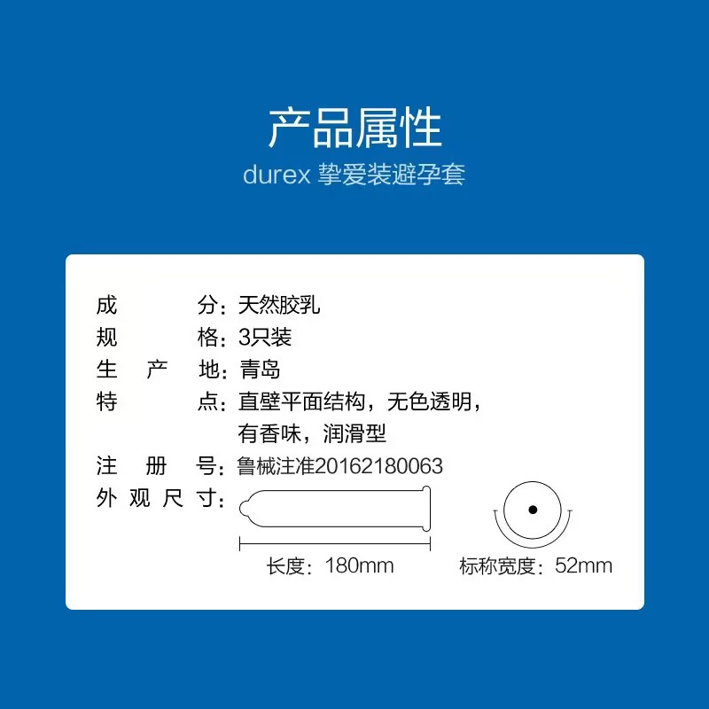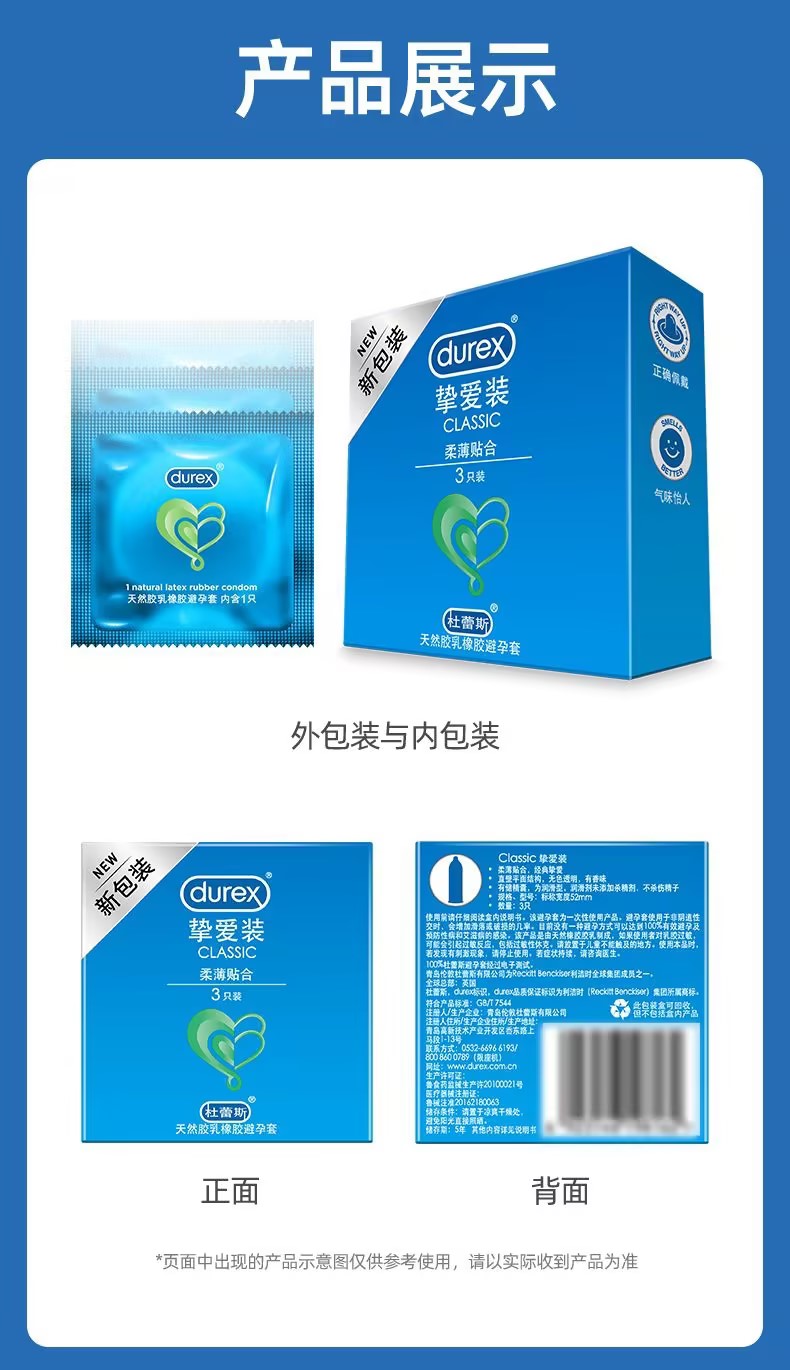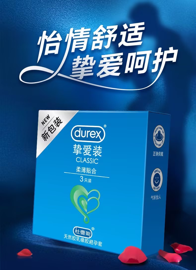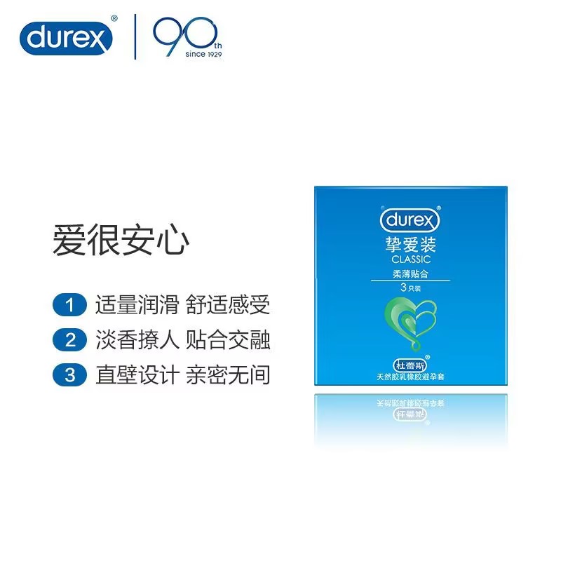 【挚爱呵护】杜蕾斯正品安全套挚爱3只装柔薄贴合避孕套成人性用品