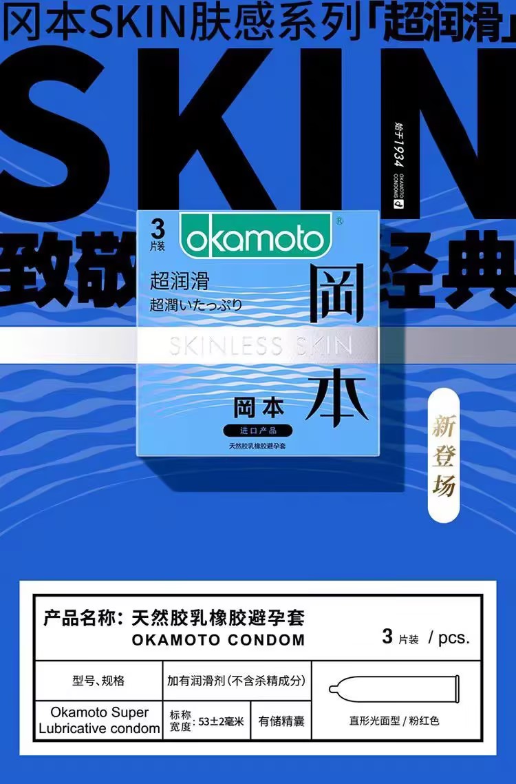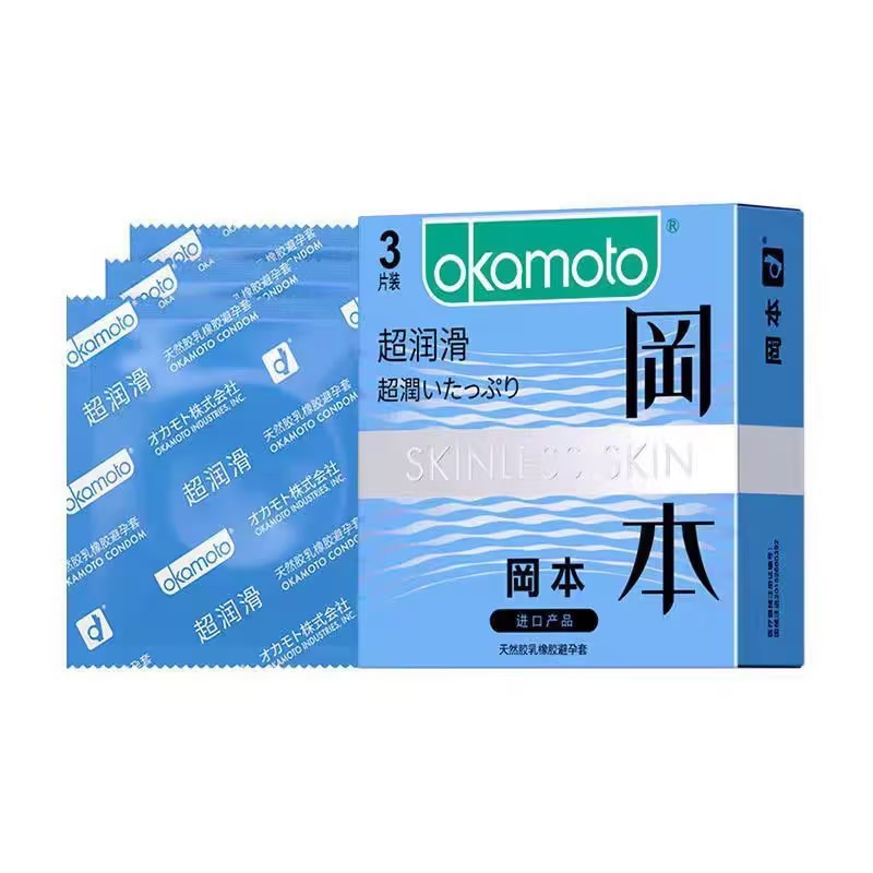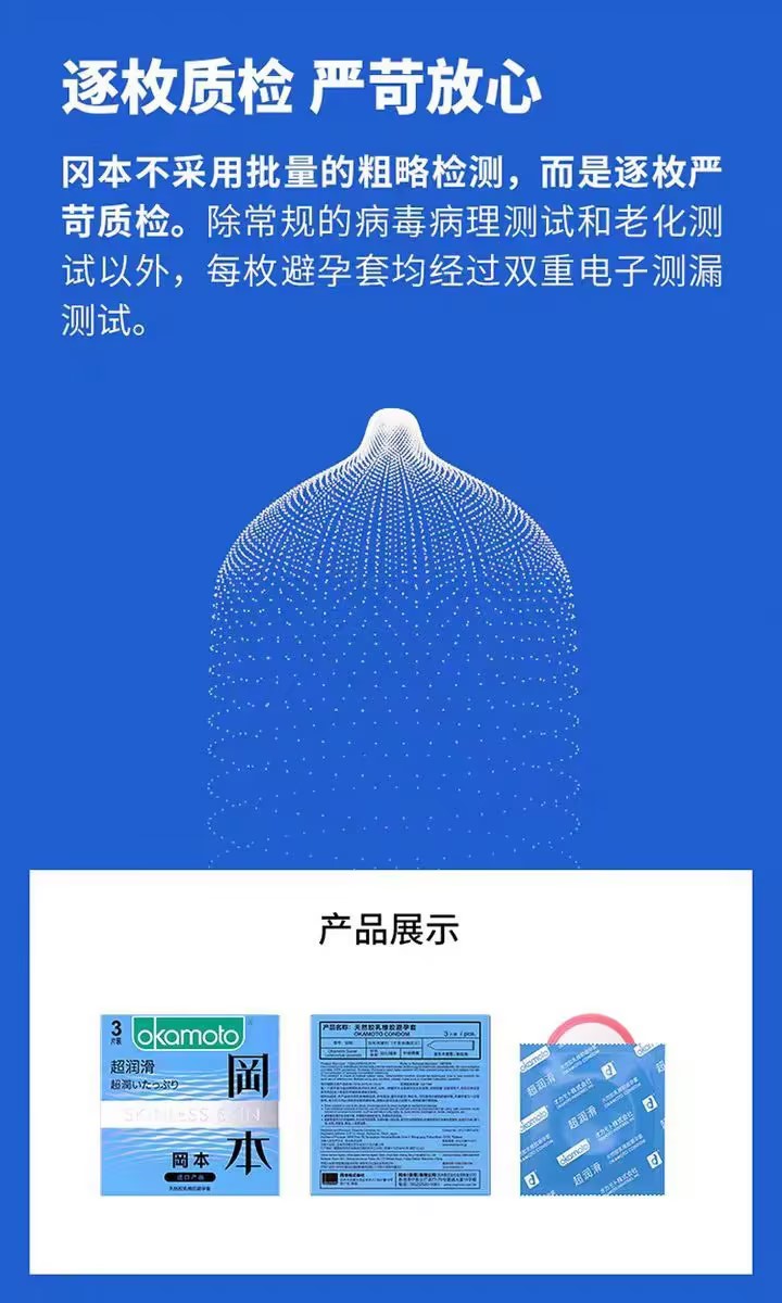 【+20%润滑】冈本正品进口超润滑避孕套3只装SKIN肤感大油量安全套套成人性用品