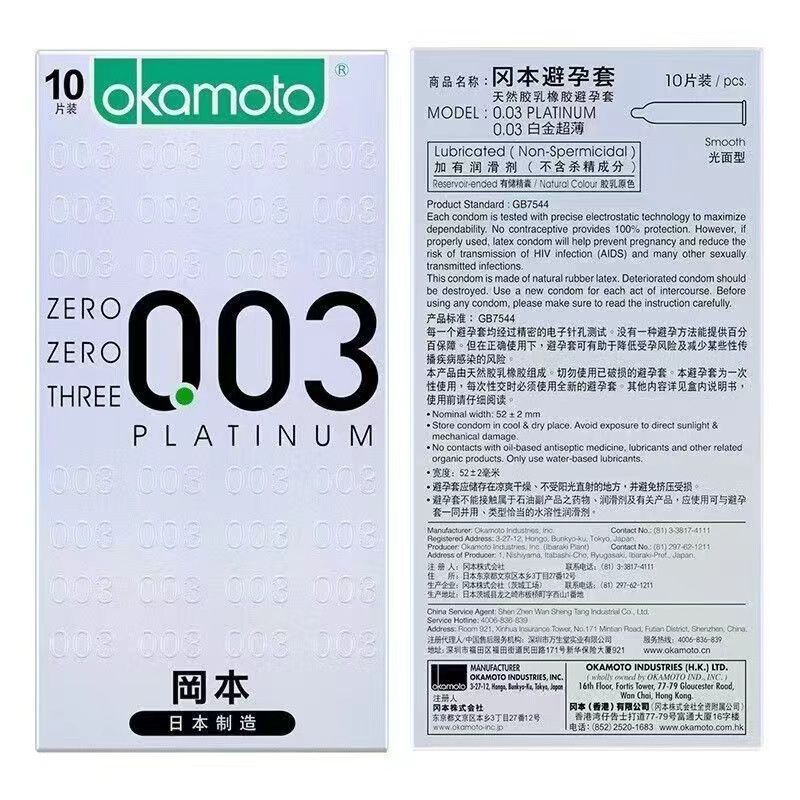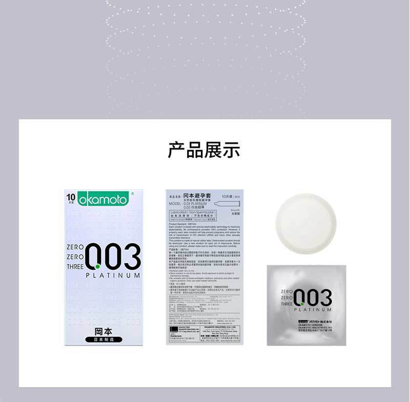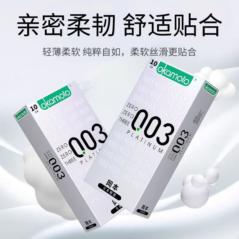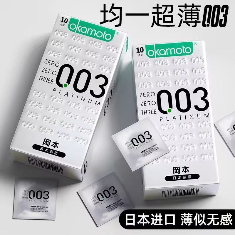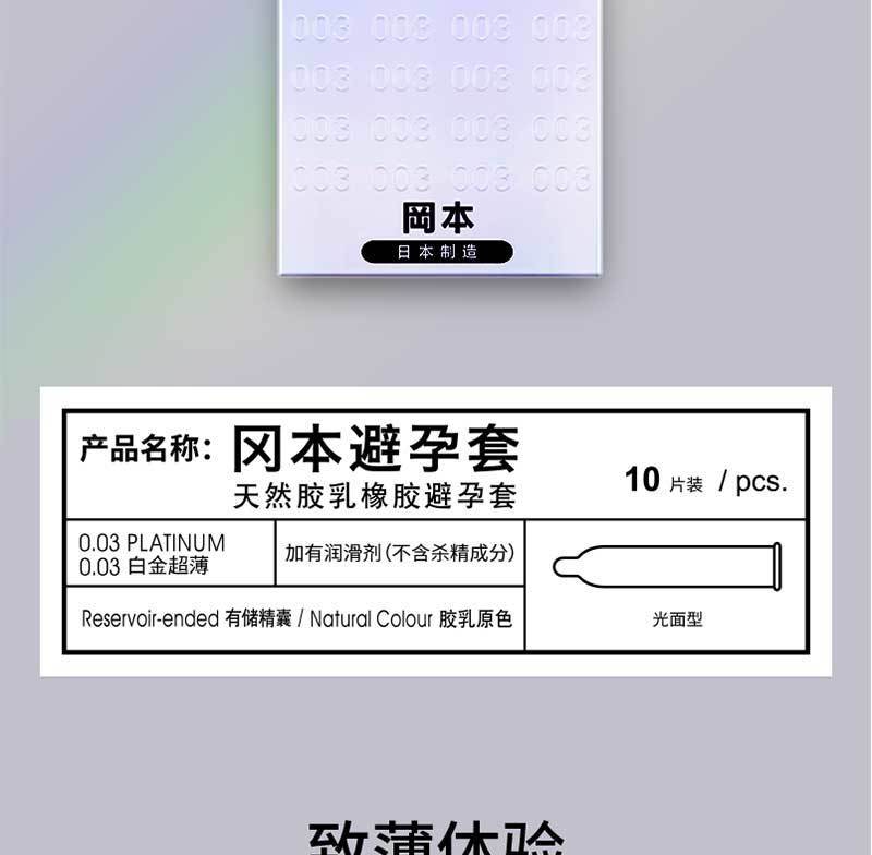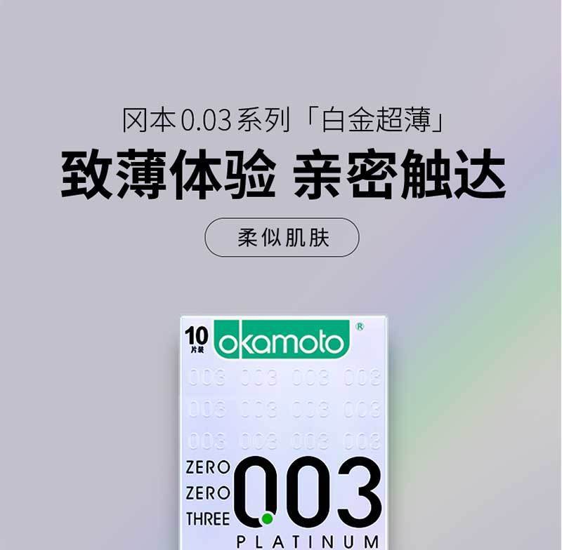 【白金超薄】冈本日本进口003避孕套0.03mm白金超薄安全套套10片盒成人用品byt