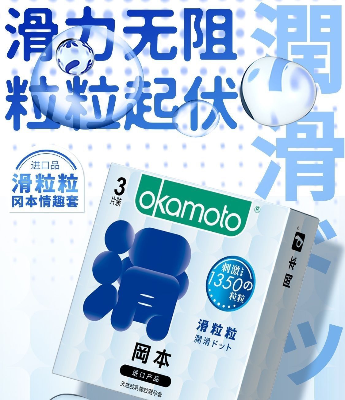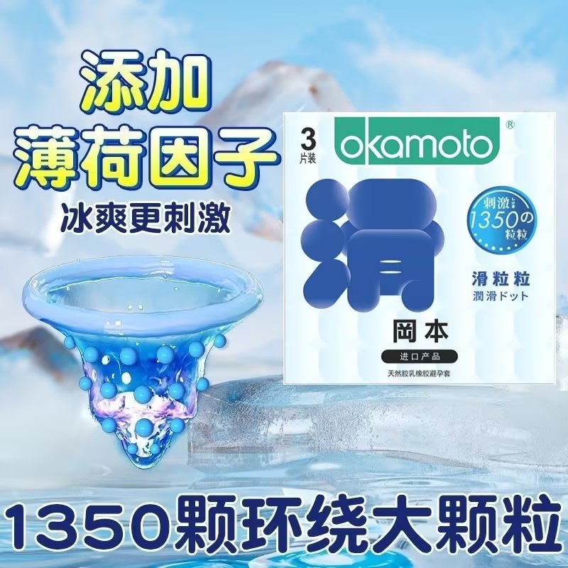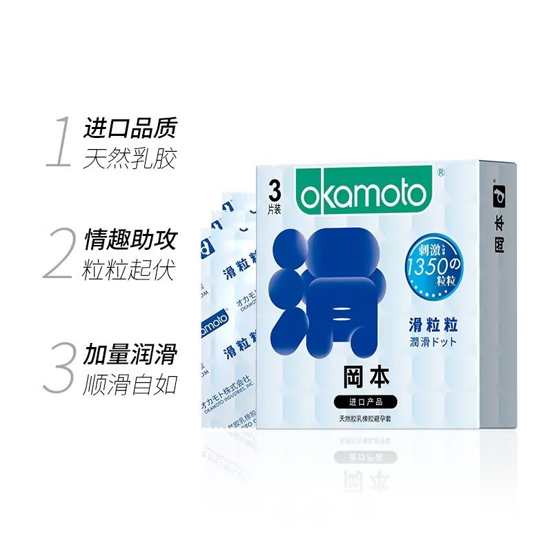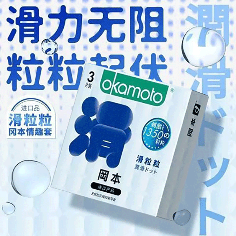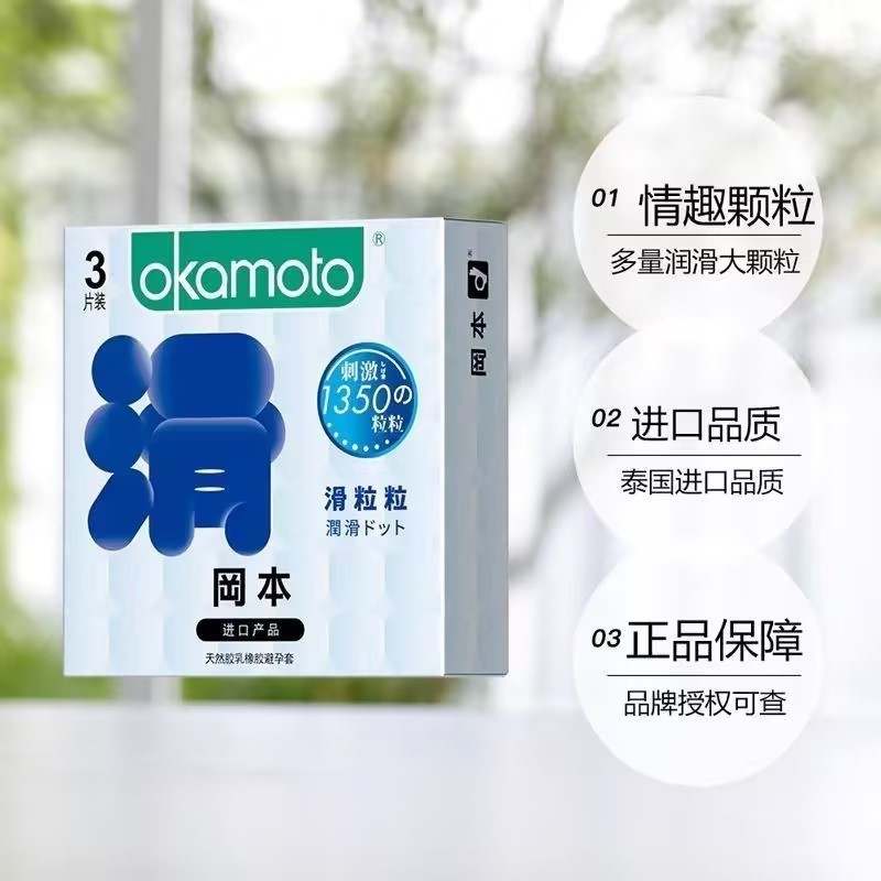 【超滑大颗粒】冈本滑粒粒超薄避孕套安全套保险套情趣用品3只盒 狼牙套高潮套成人情趣