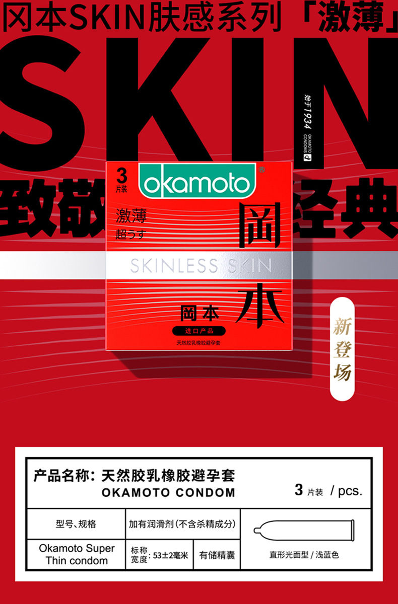 【经典肤感】冈本进口激薄安全套避孕套3只装成人用品计生用品情趣套套