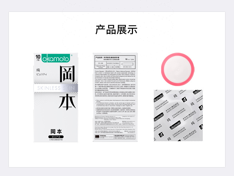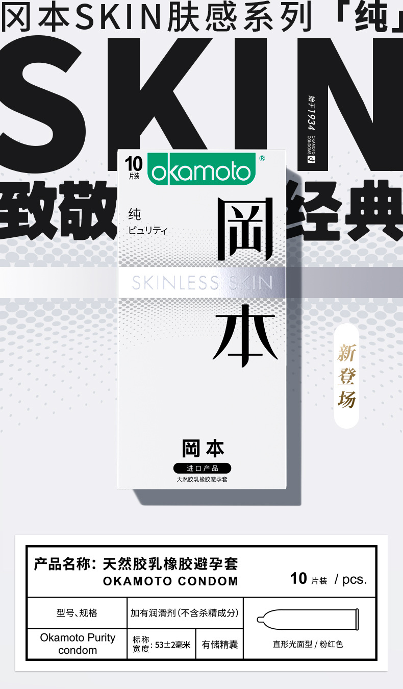 【裸感纯薄】进口冈本避孕套SKIN系列纯极限薄10片装成人情趣用品