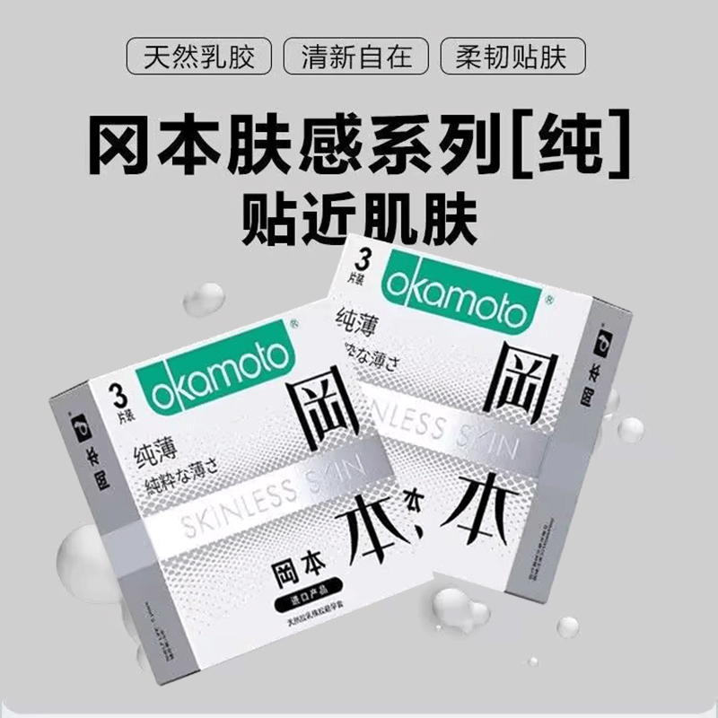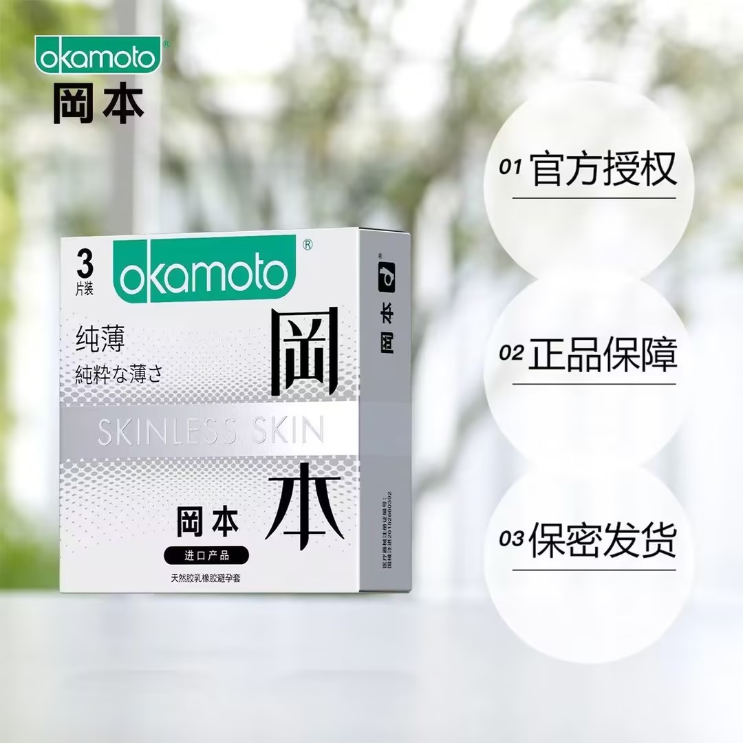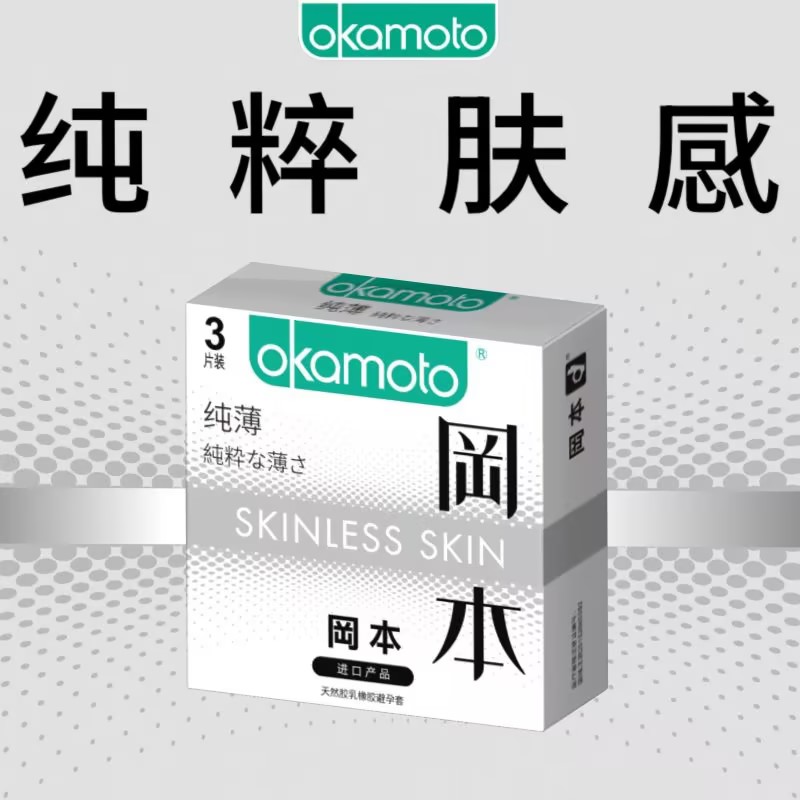 【至纯肤感】冈本SKIN正品进口纯超薄安全套无敏无味避孕套 3只装 成人用品情趣计生用品