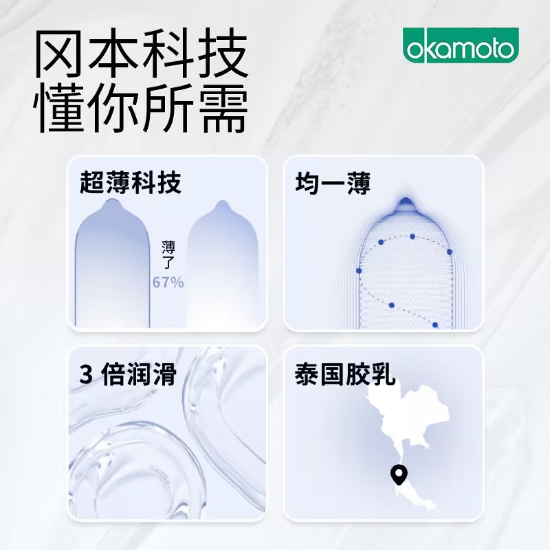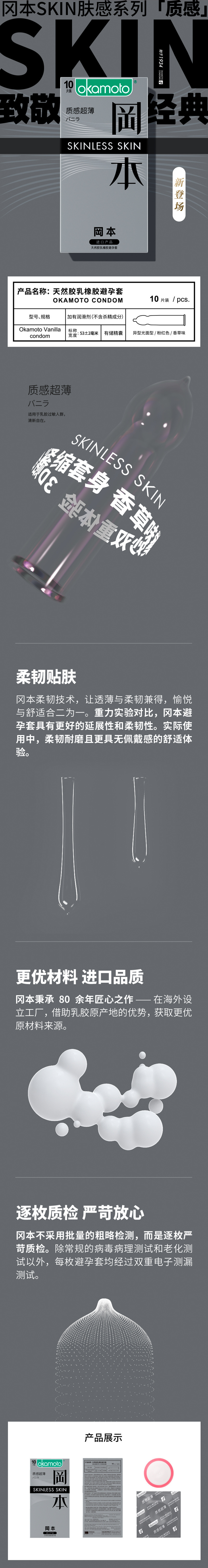 【质感超薄】进口冈本SKIN系列质感超薄10片装避孕套安全套成人情趣性用品