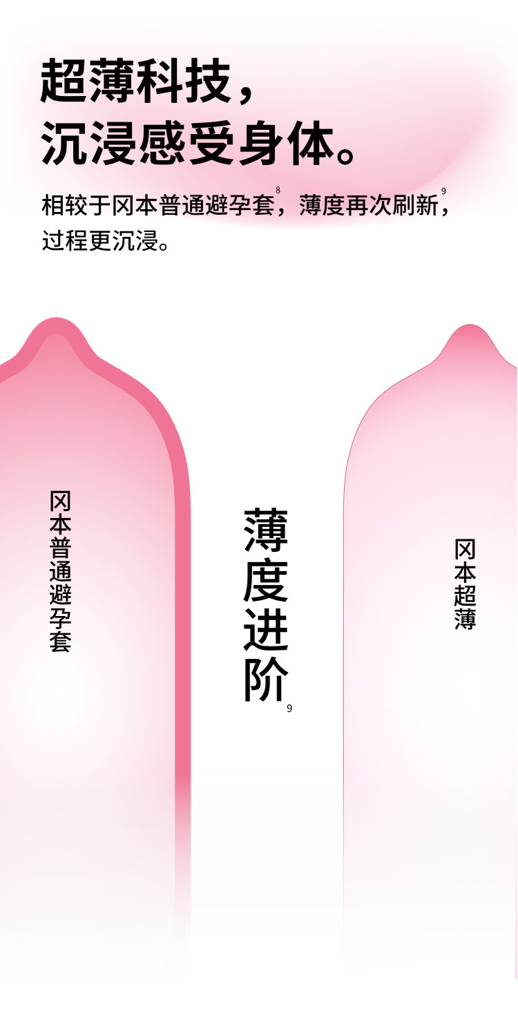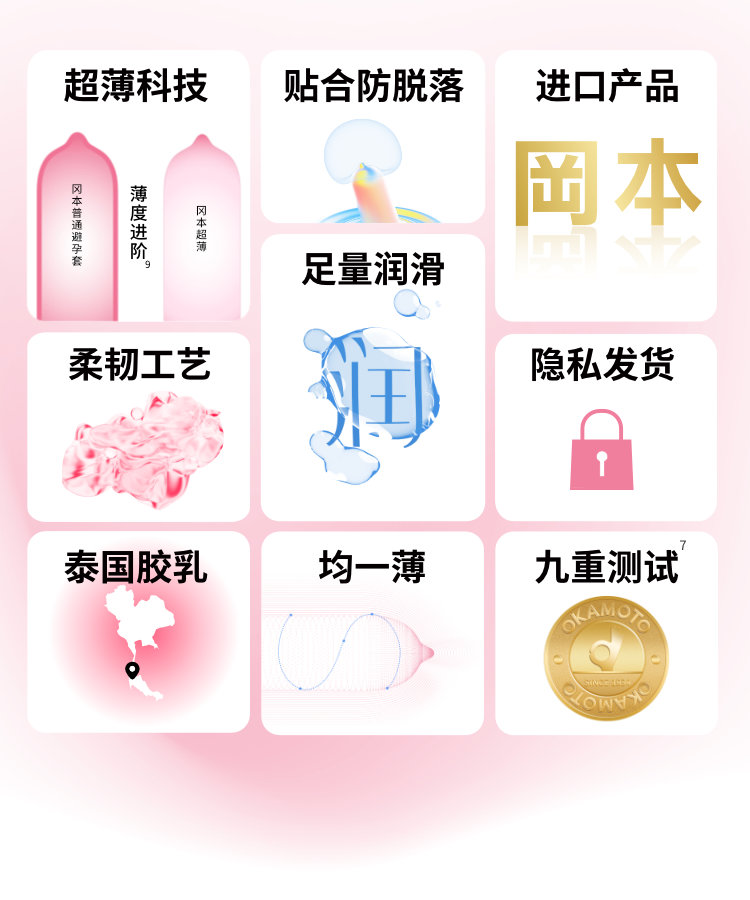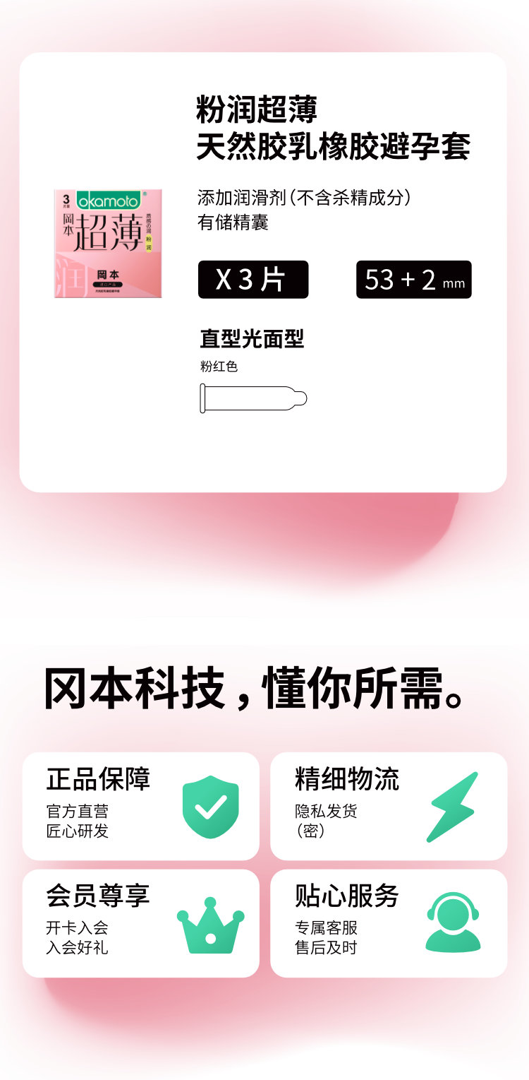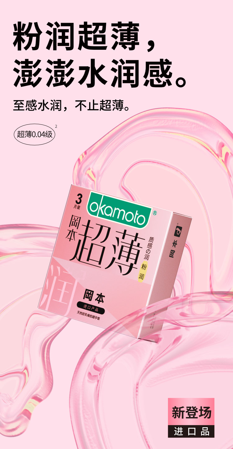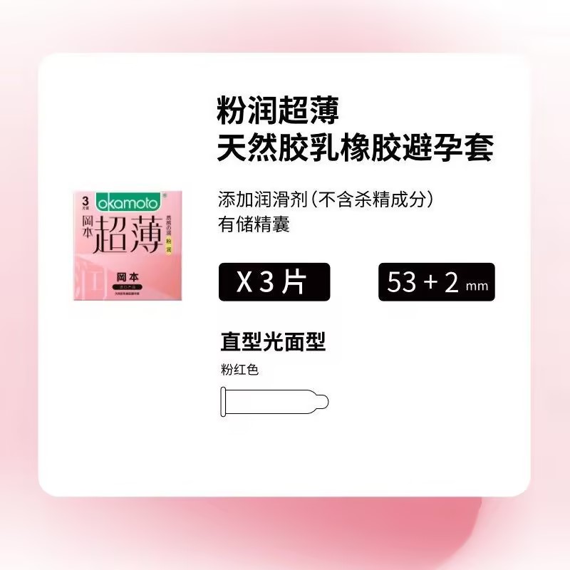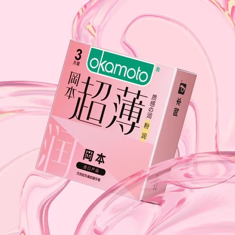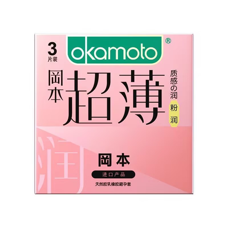 【质感水润薄】冈本粉润超薄零感避孕套3片盒超薄超润贴身裸感男用玻尿酸安全套套成人情趣用品