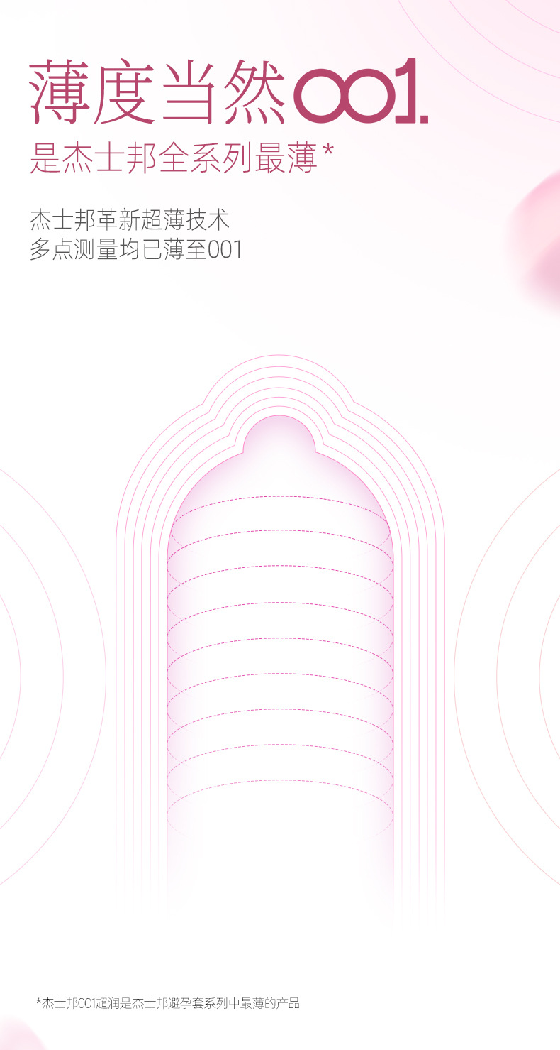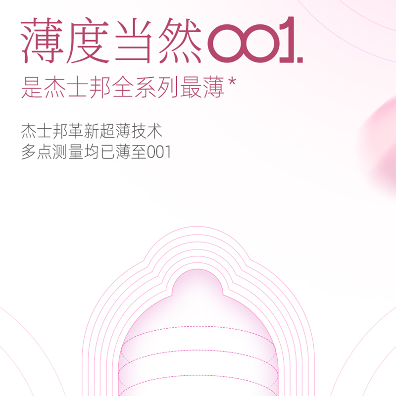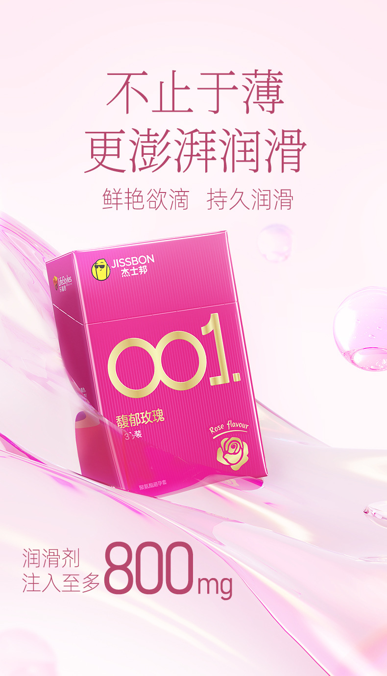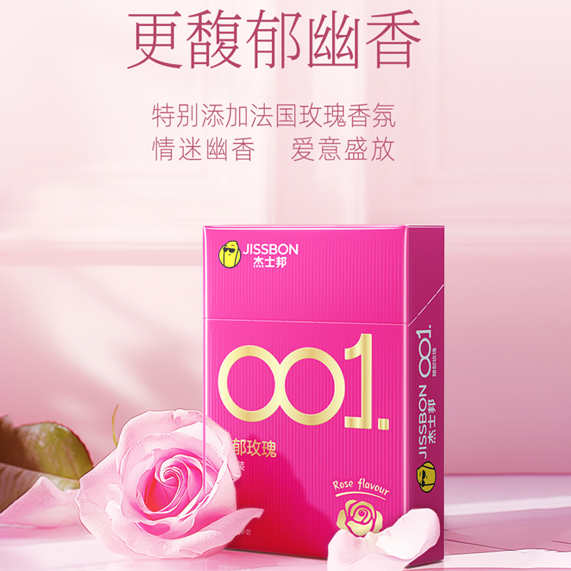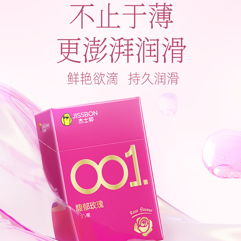 【001玫瑰香】杰士邦0.01聚氨酯超薄安全套3只装情趣持久润滑裸入足量水润防过敏成人用品