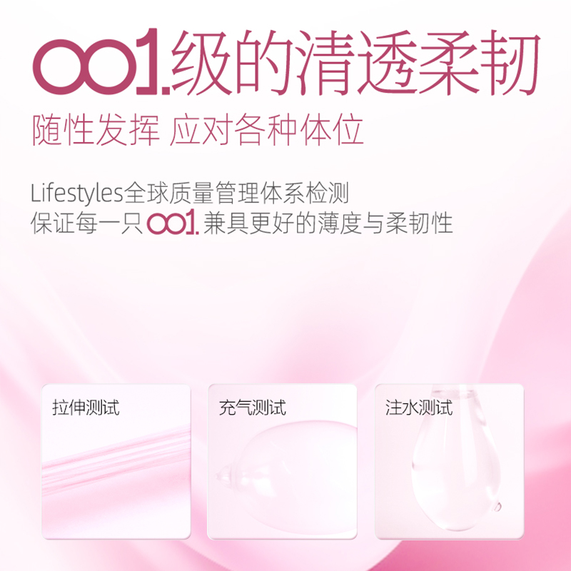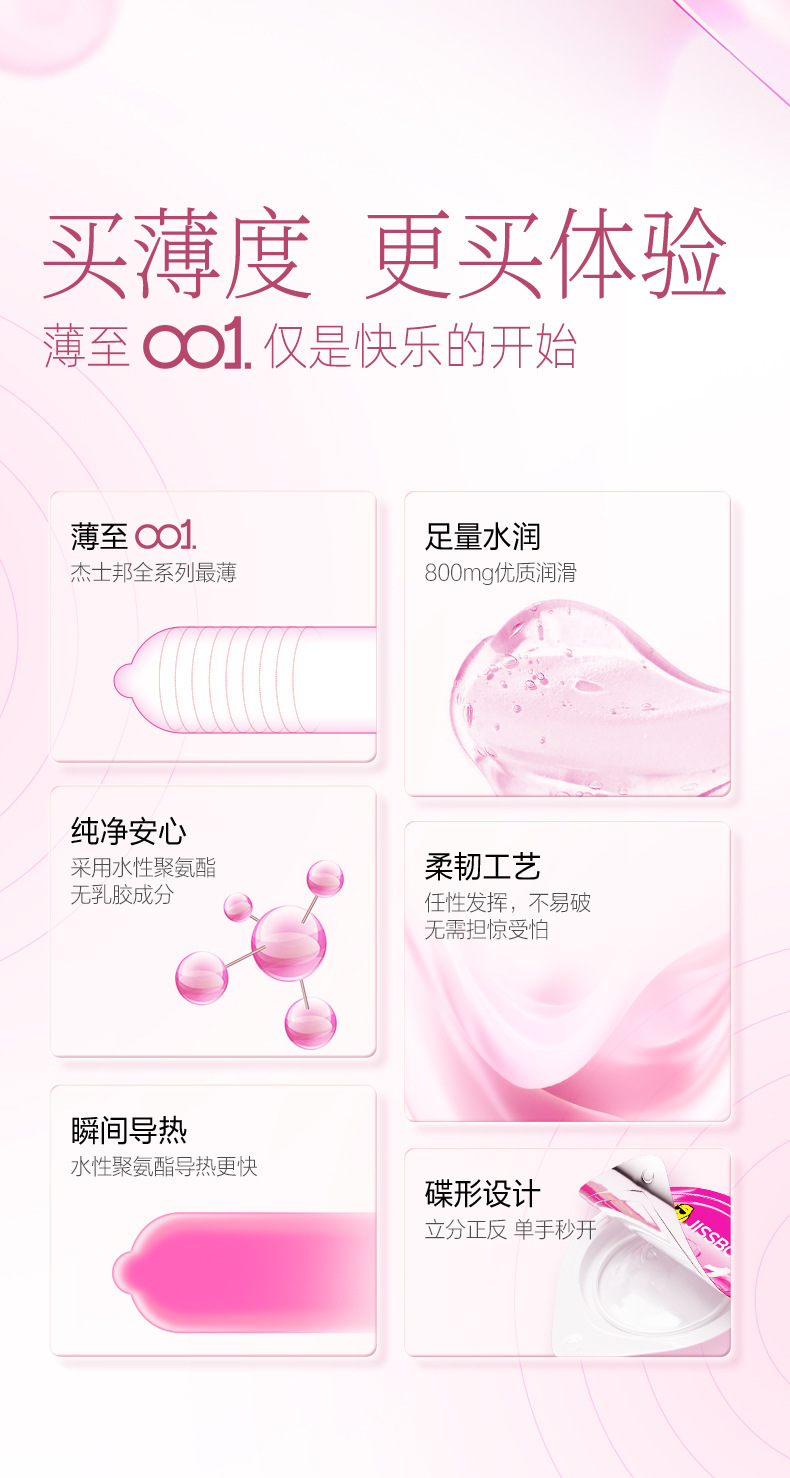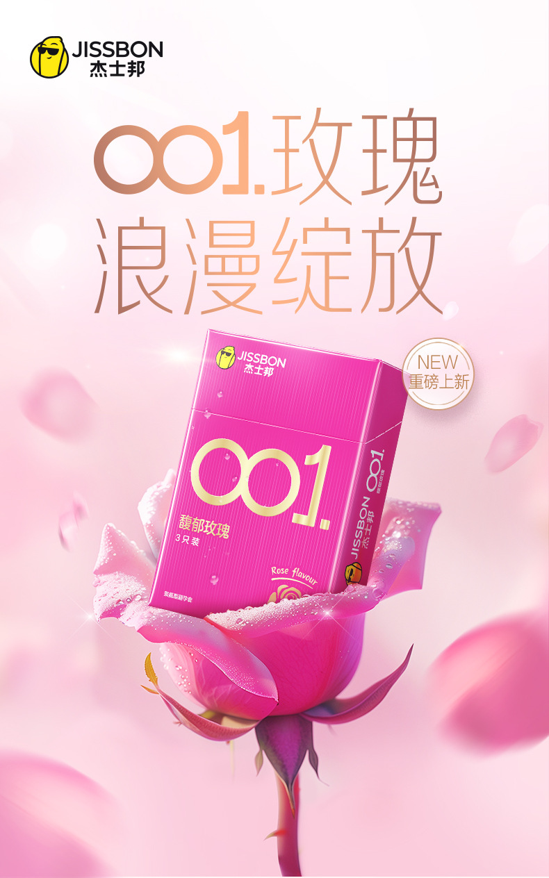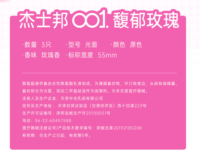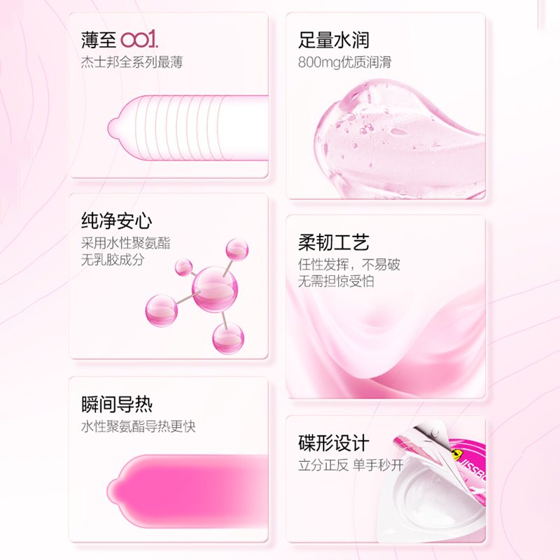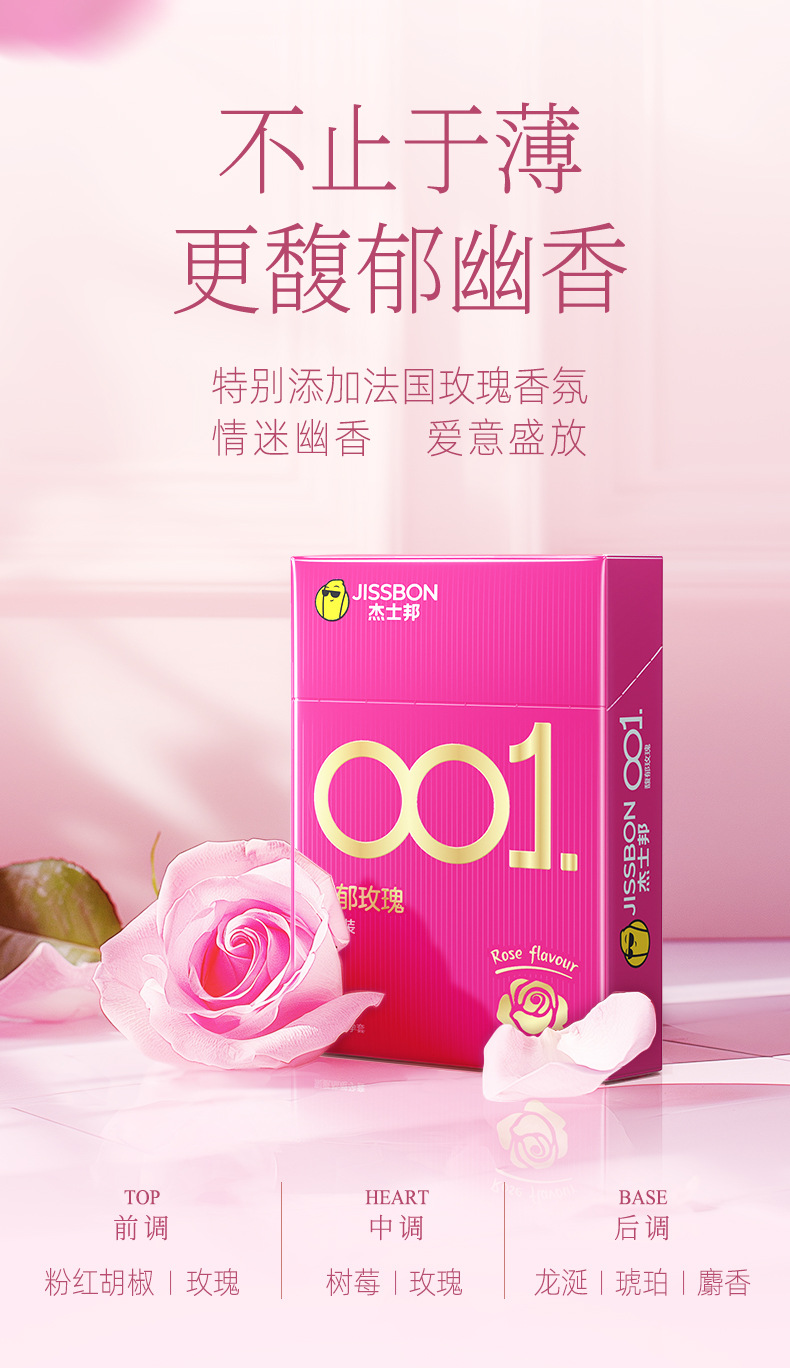 【001玫瑰香】杰士邦0.01聚氨酯超薄安全套3只装情趣持久润滑裸入足量水润防过敏成人用品