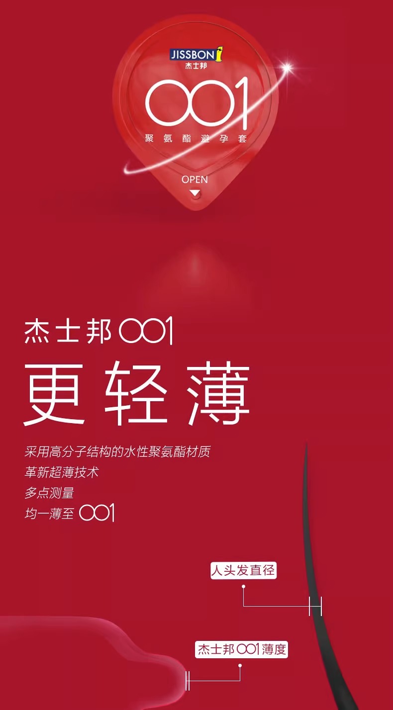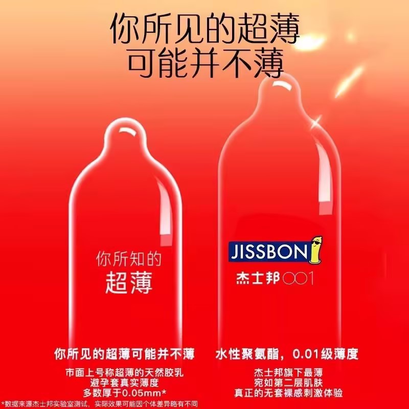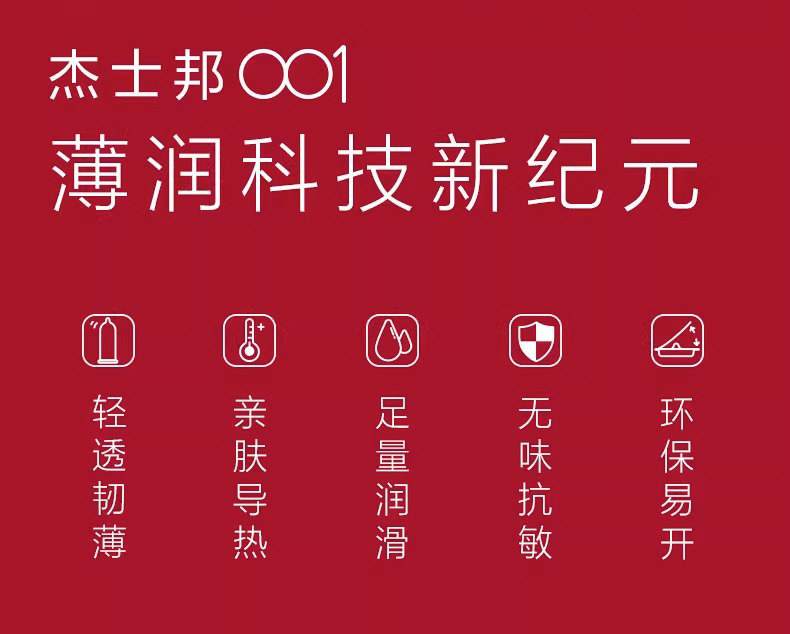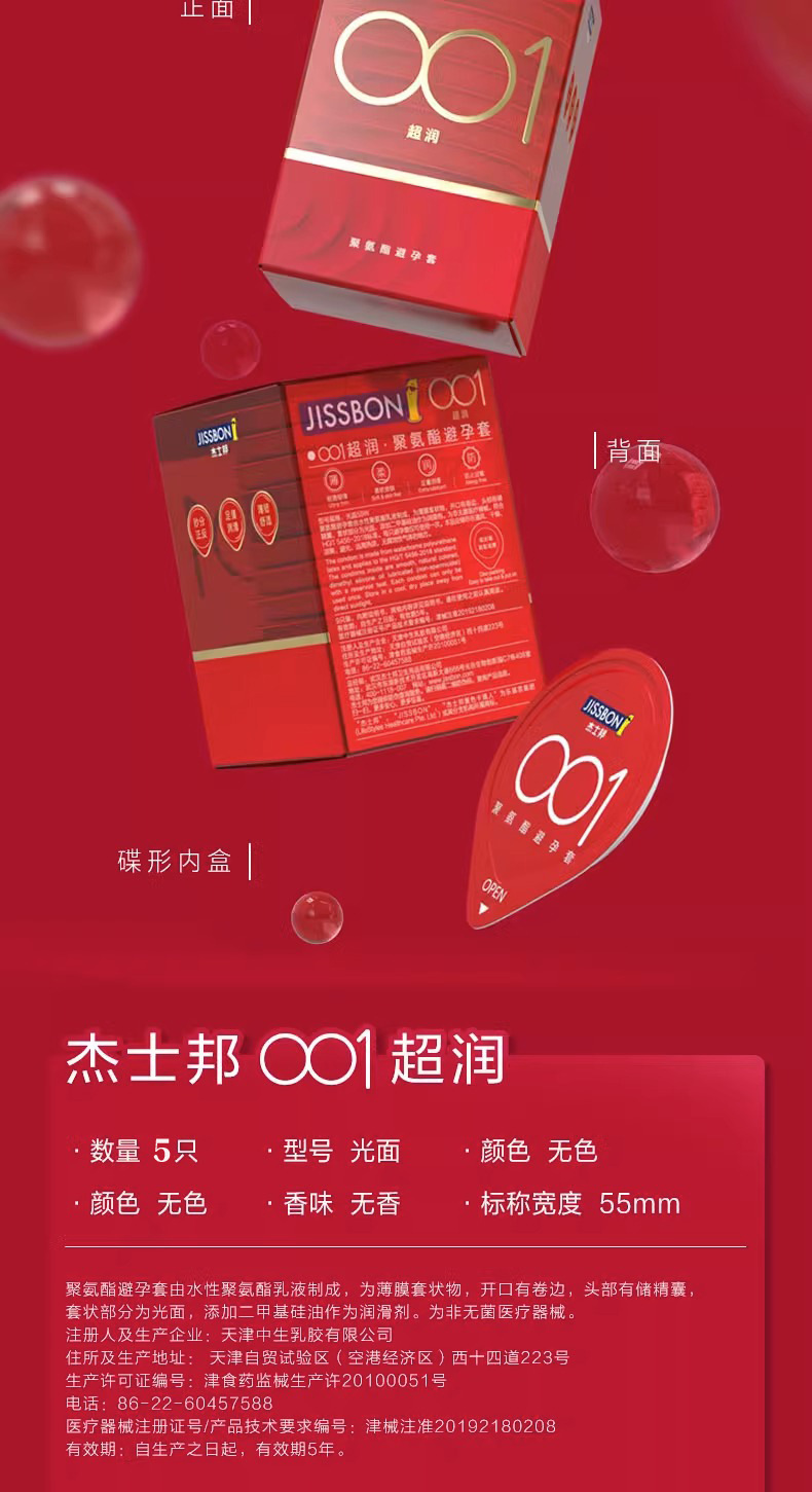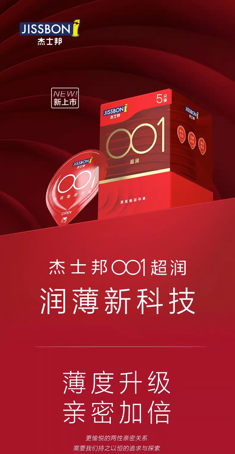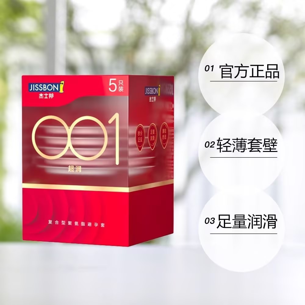 【薄如裸感】杰士邦聚氨酯001避孕套5只盒超柔润极肤感玻尿酸超薄超润安全套套