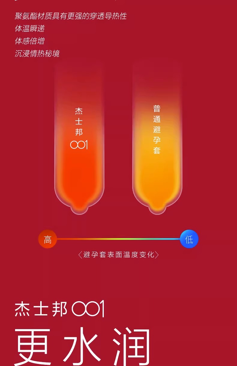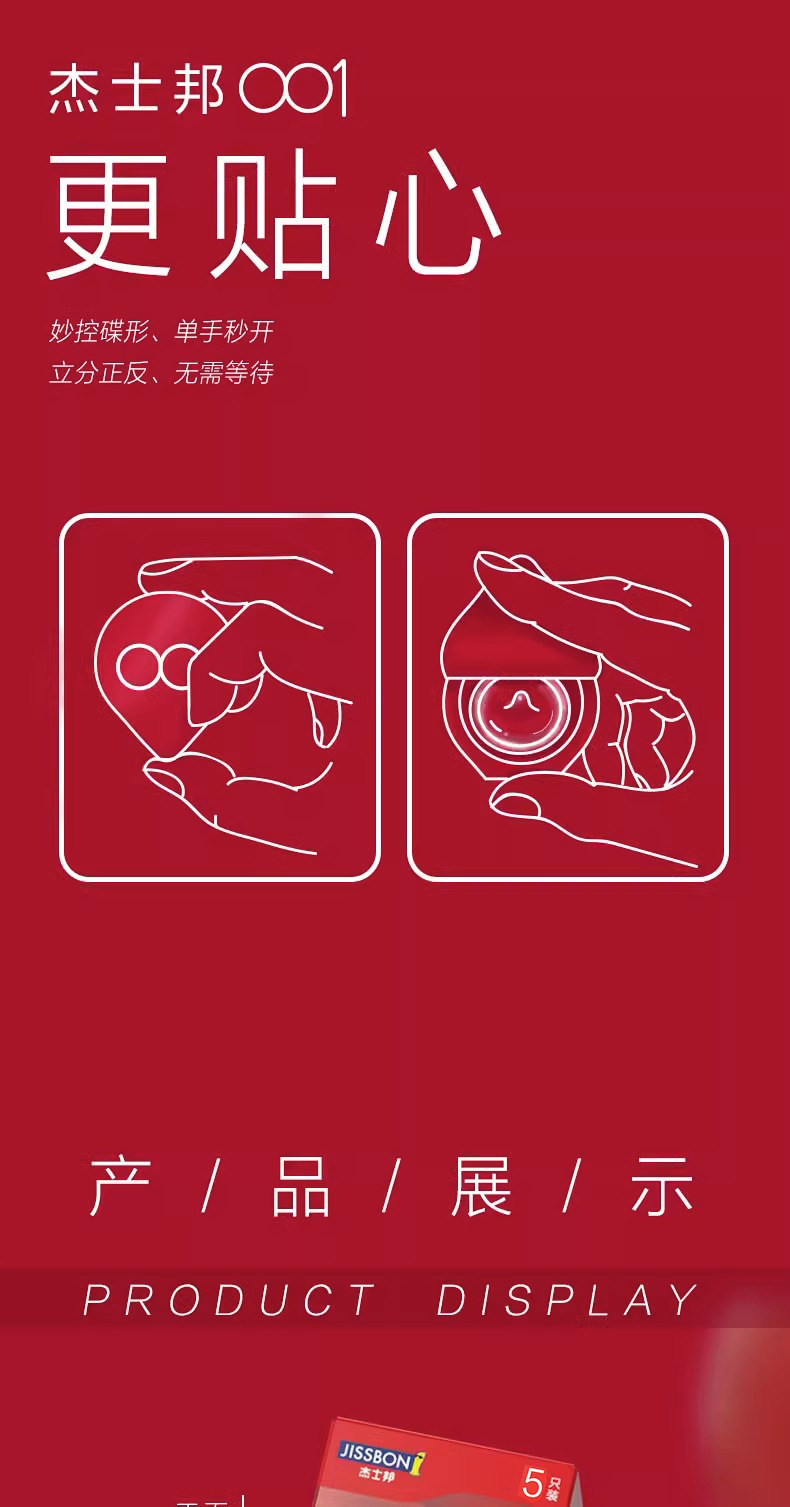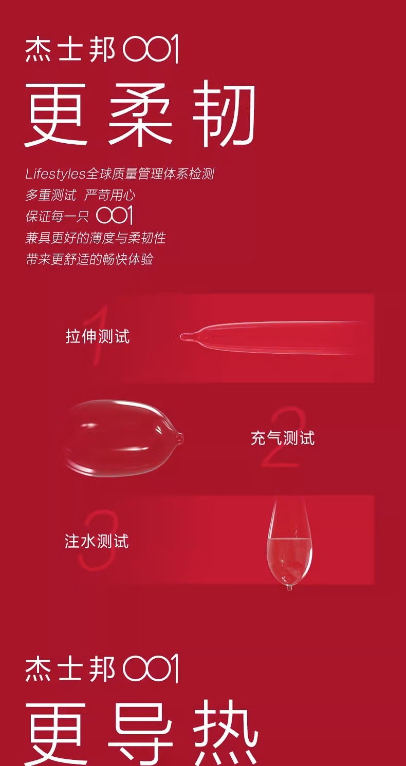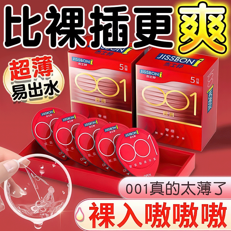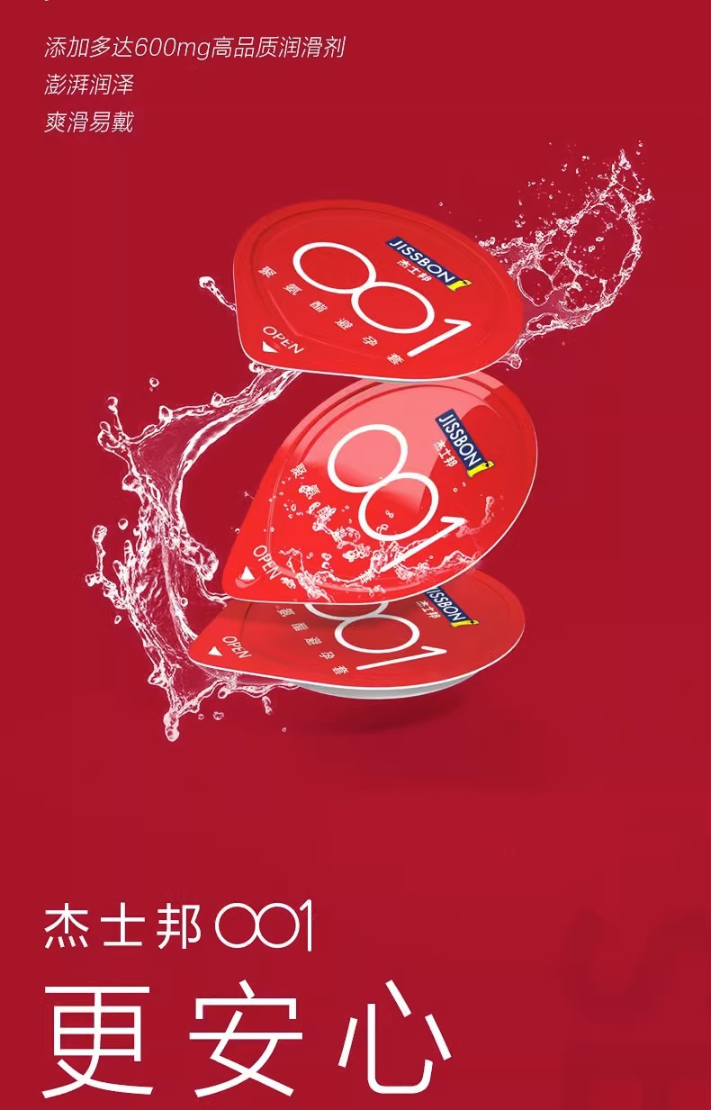 【薄如裸感】杰士邦聚氨酯001避孕套5只盒超柔润极肤感玻尿酸超薄超润安全套套