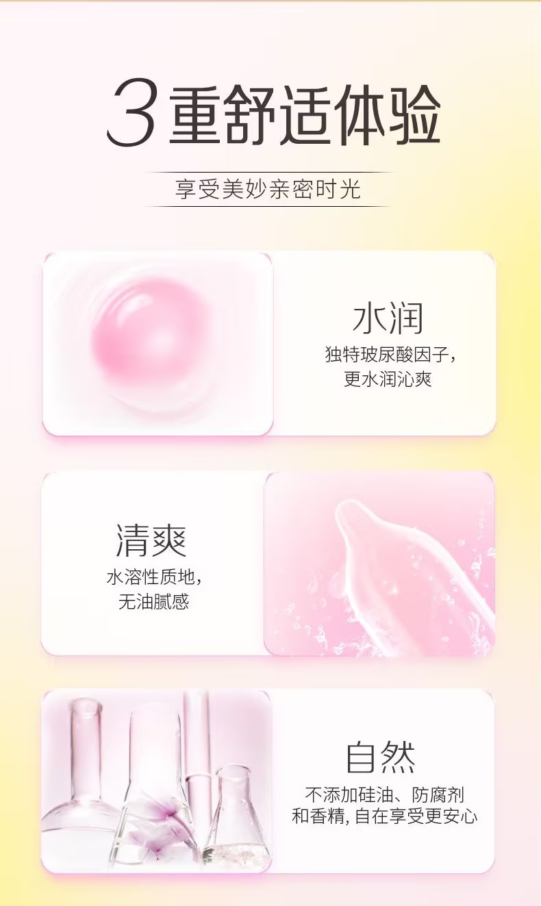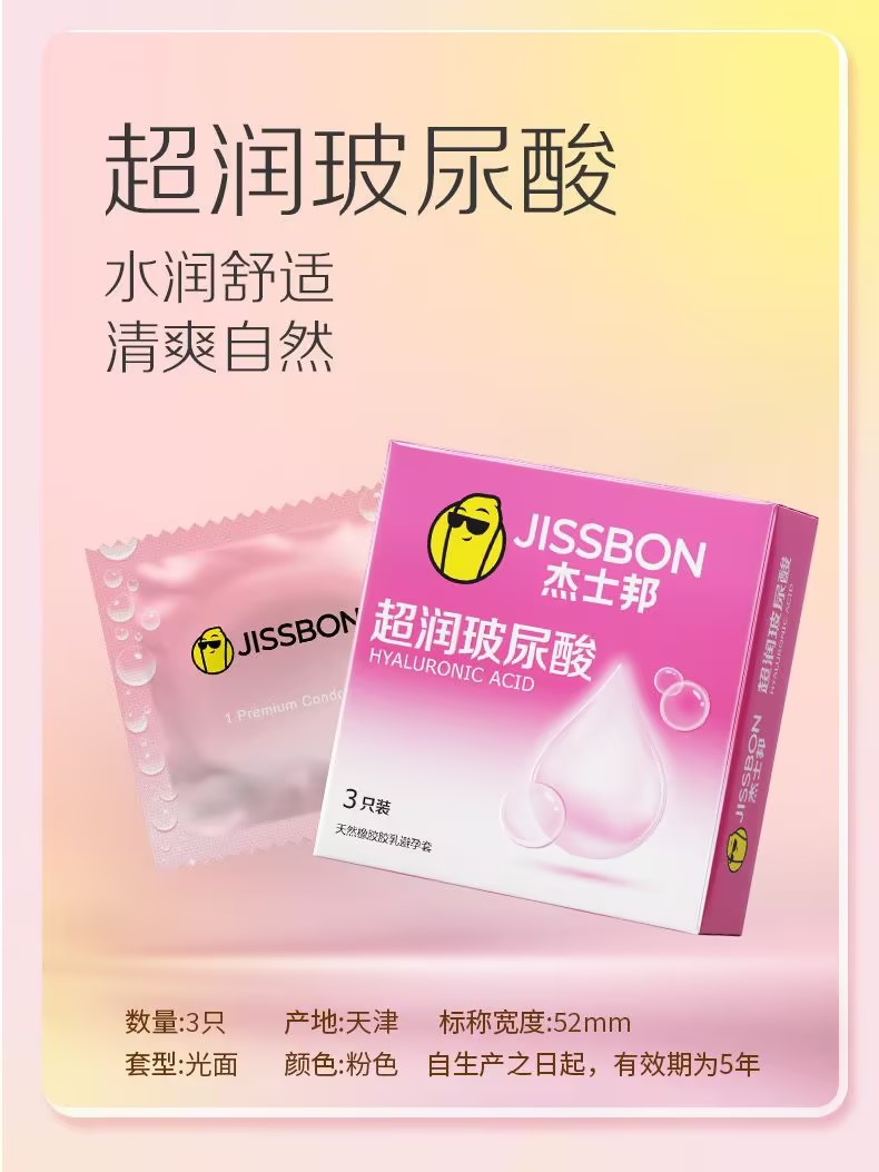 【超润玻尿酸】杰士邦超薄水润滑3只装避孕套舒适安全套计生套套成人情趣性用品