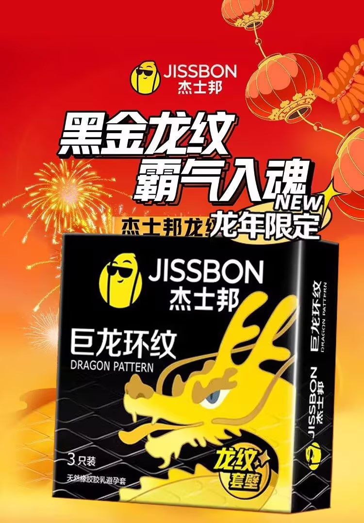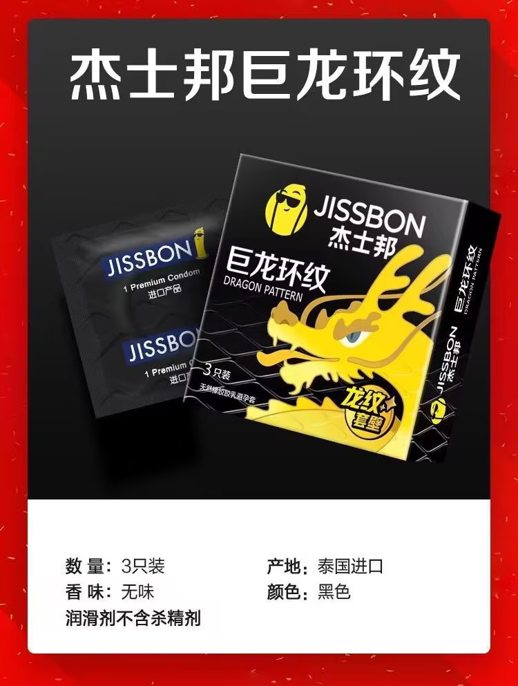 【刺激龙纹】杰士邦巨龙环纹避孕套3只盒龙套加倍润滑龙纹刺激安全套套byt小雨伞