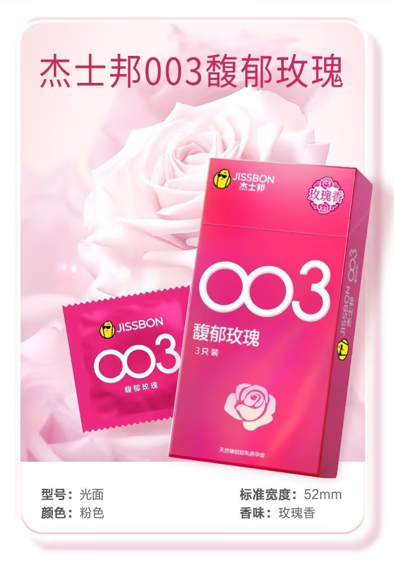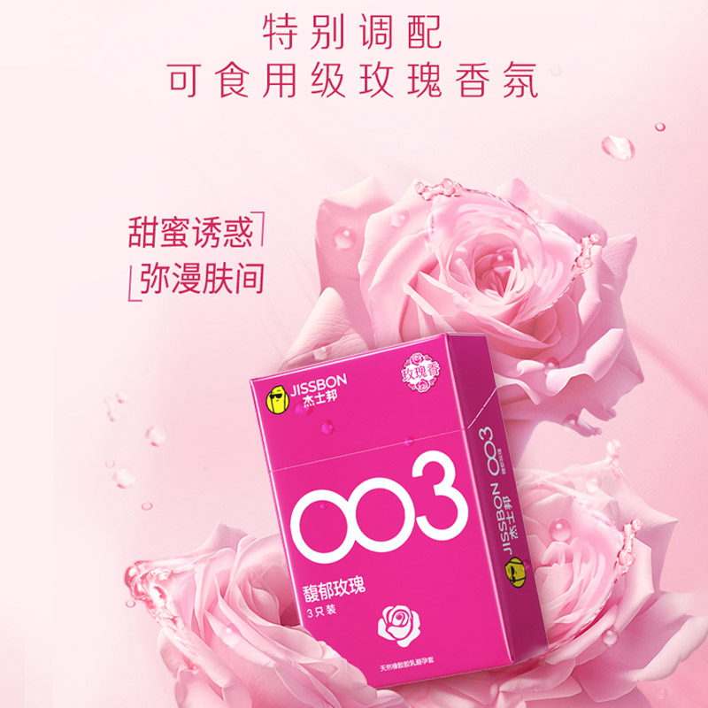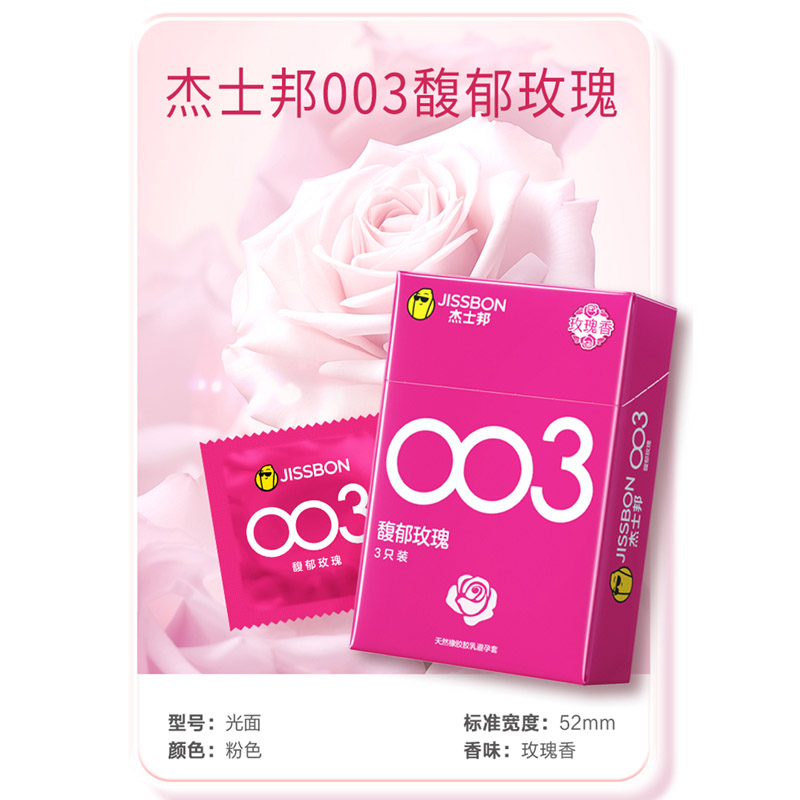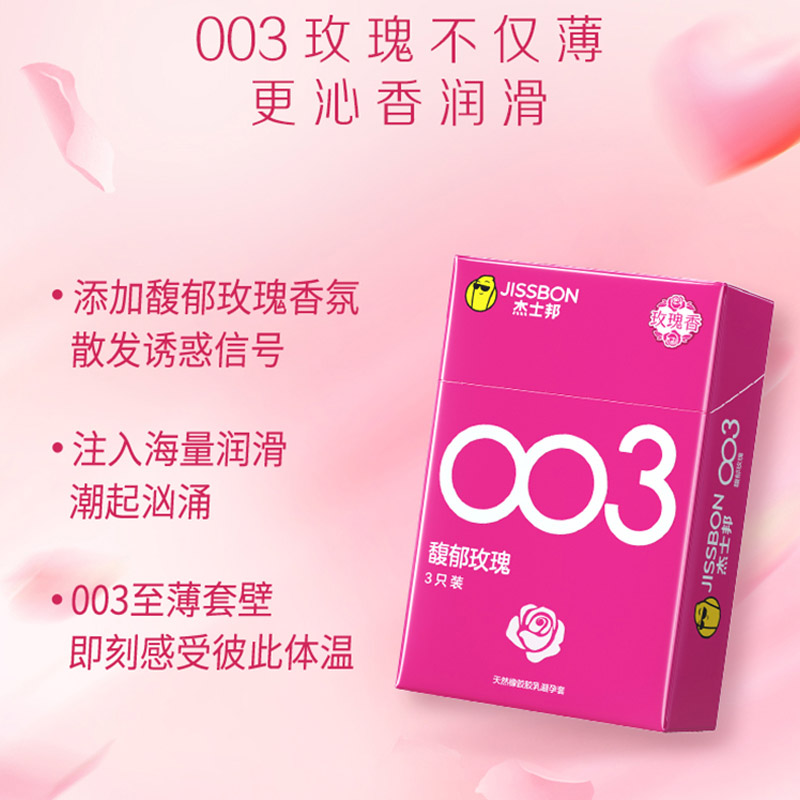 【馥郁玫瑰】杰士邦003超薄安全套3只装海量润滑至薄花香超柔润极肤超润滑避孕套套成人用品