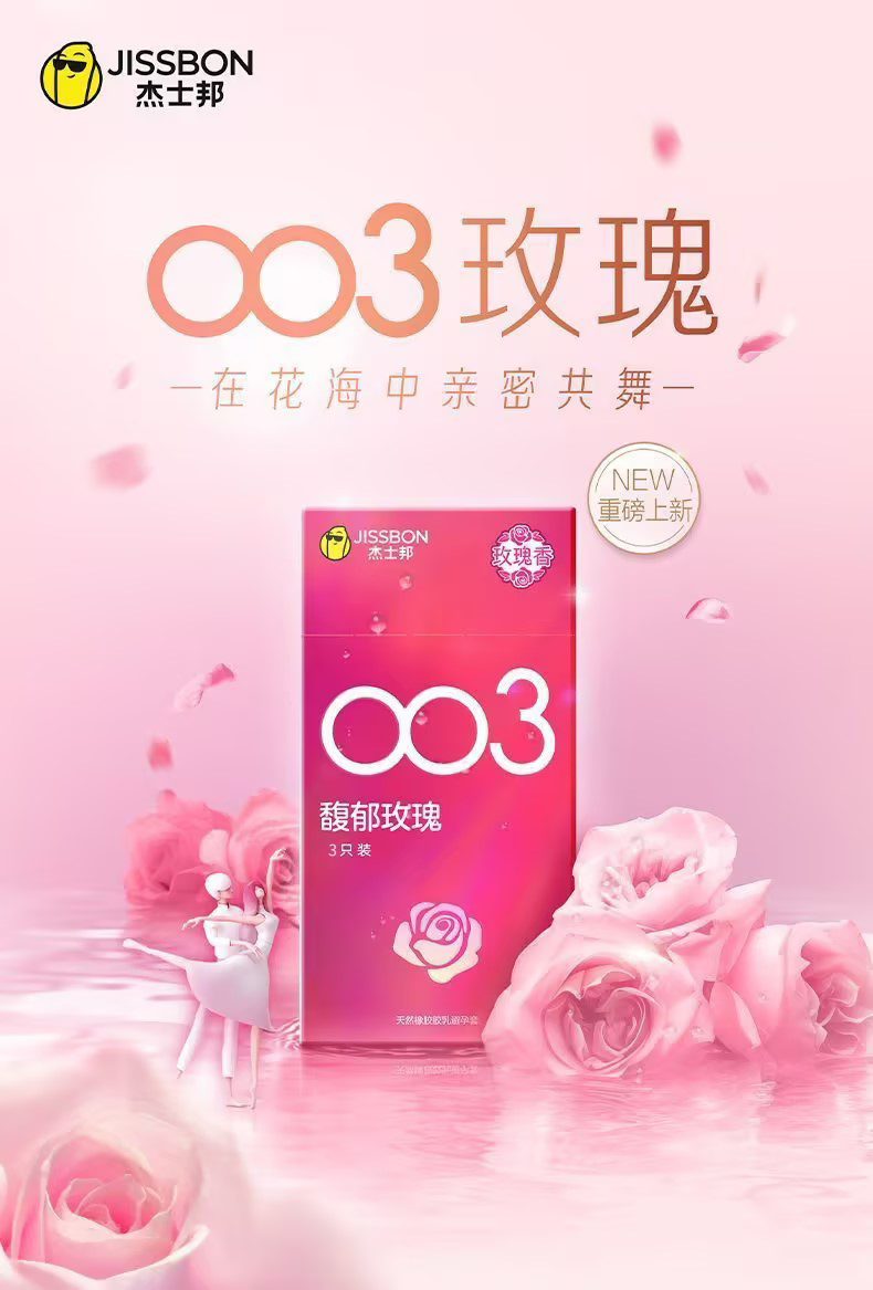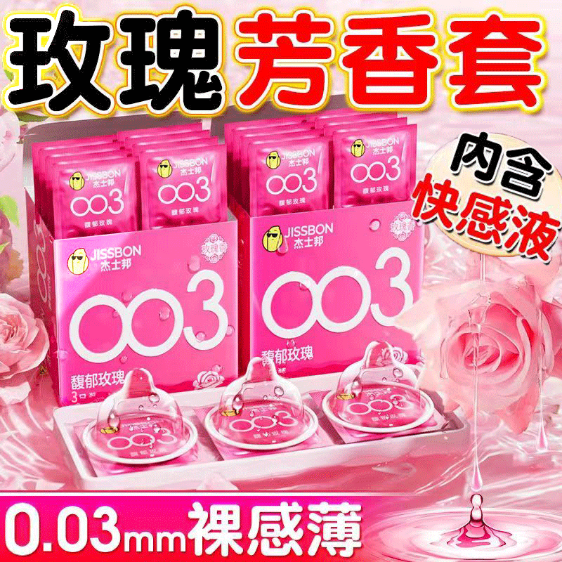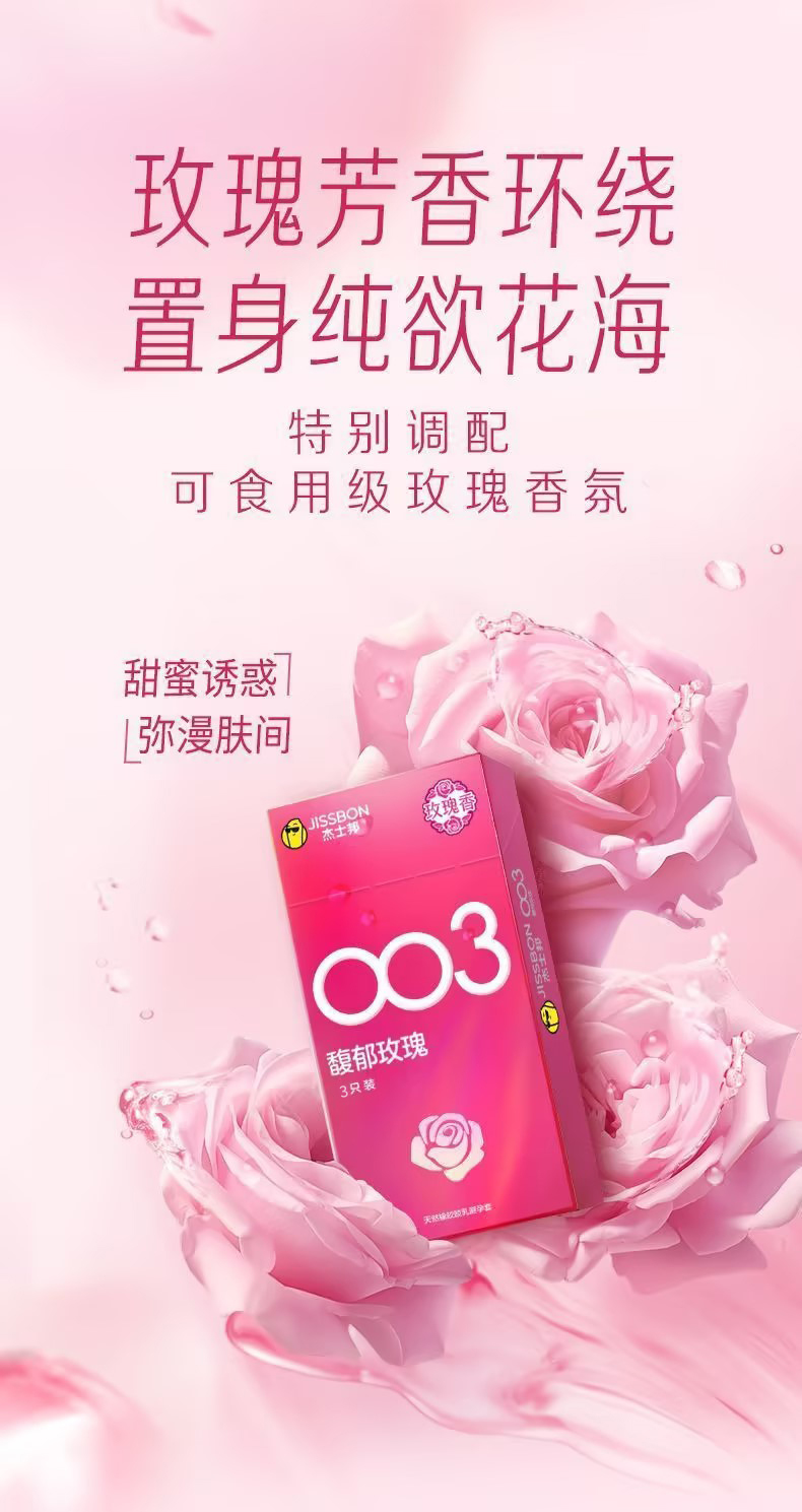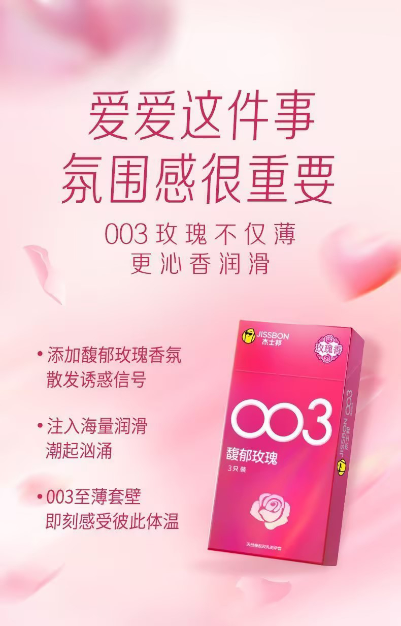 【馥郁玫瑰】杰士邦003超薄安全套3只装海量润滑至薄花香超柔润极肤超润滑避孕套套成人用品