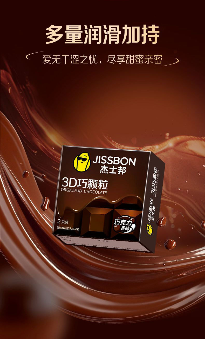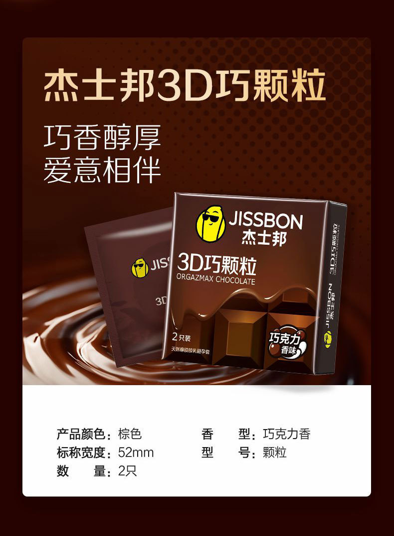 【颗粒刺激】杰士邦3D巧颗粒2只装避孕套巧克力香G点大颗粒安全套套成人情趣计生品