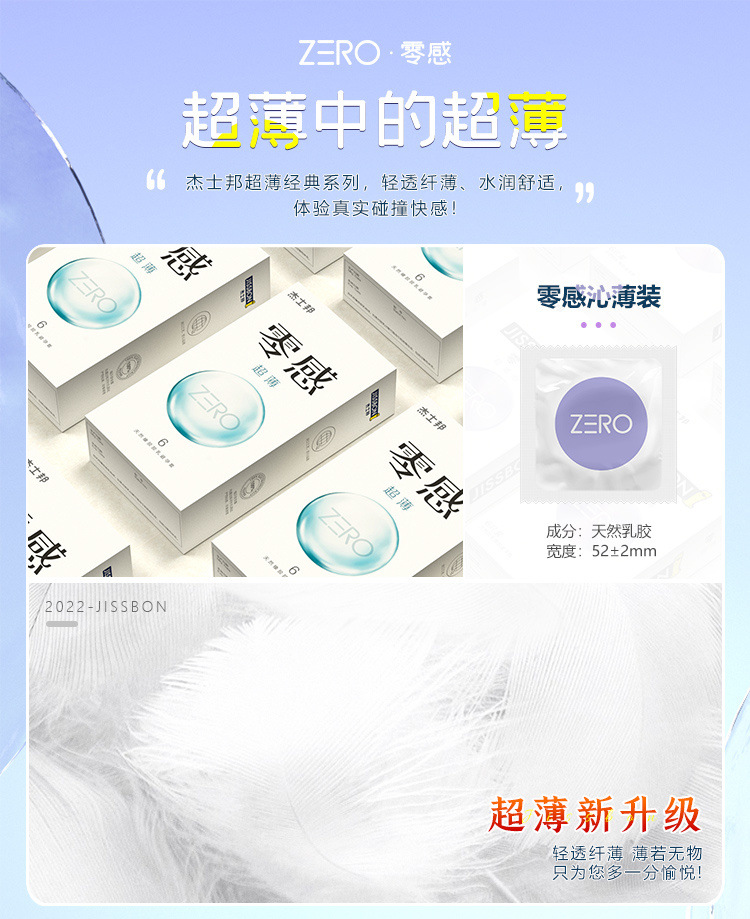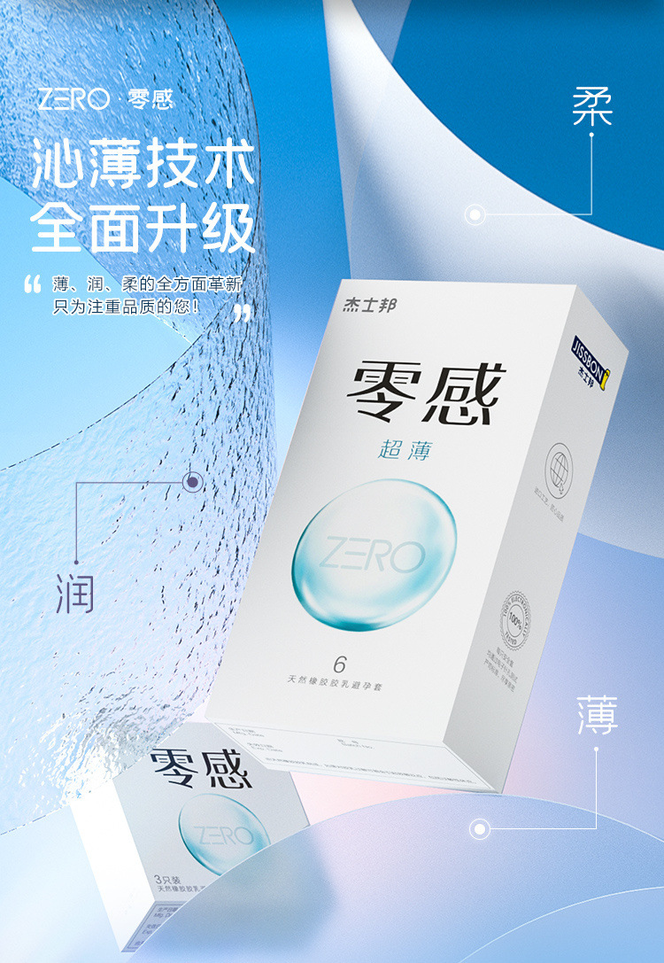【零感润薄】杰士邦超薄安全套避孕套6只装天然乳胶套套超薄TT成人情趣用品