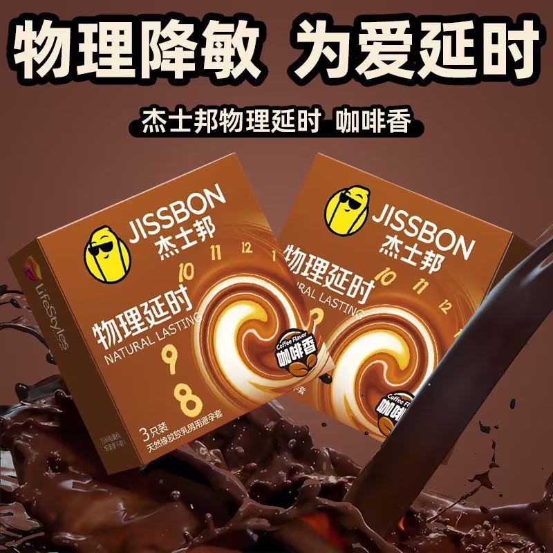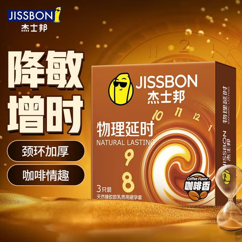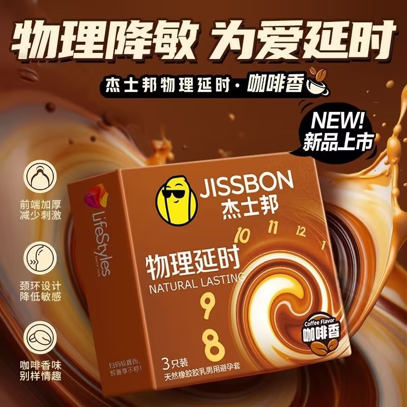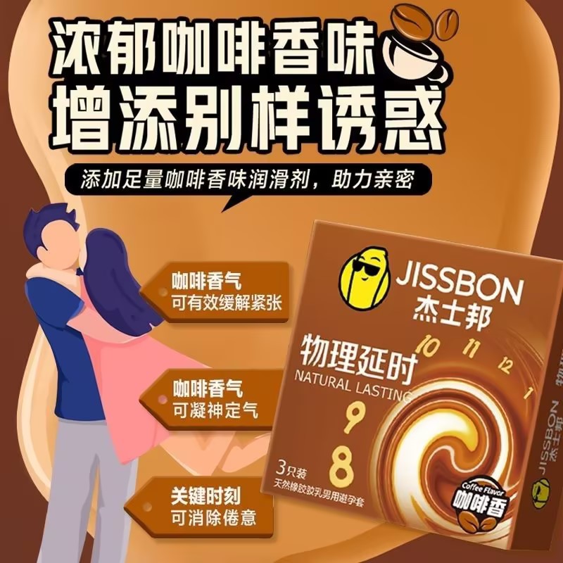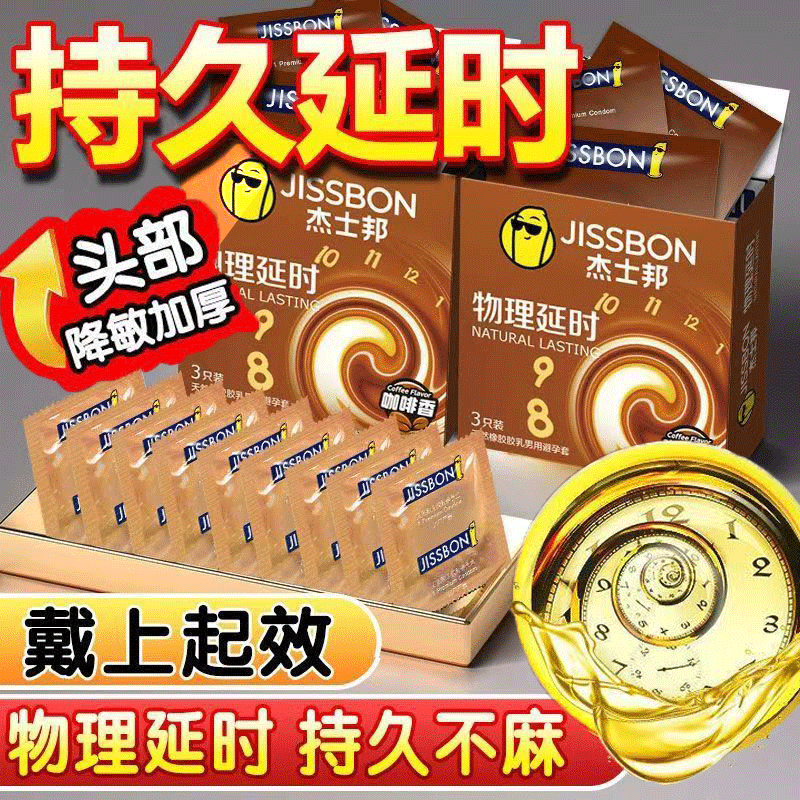 【头部加厚】杰士邦物理延时咖啡香避孕套3只装前段多倍持久锁精环安全套成人情趣套计生用品