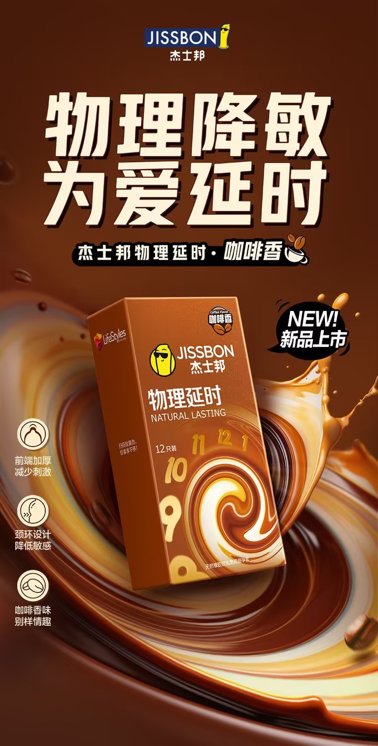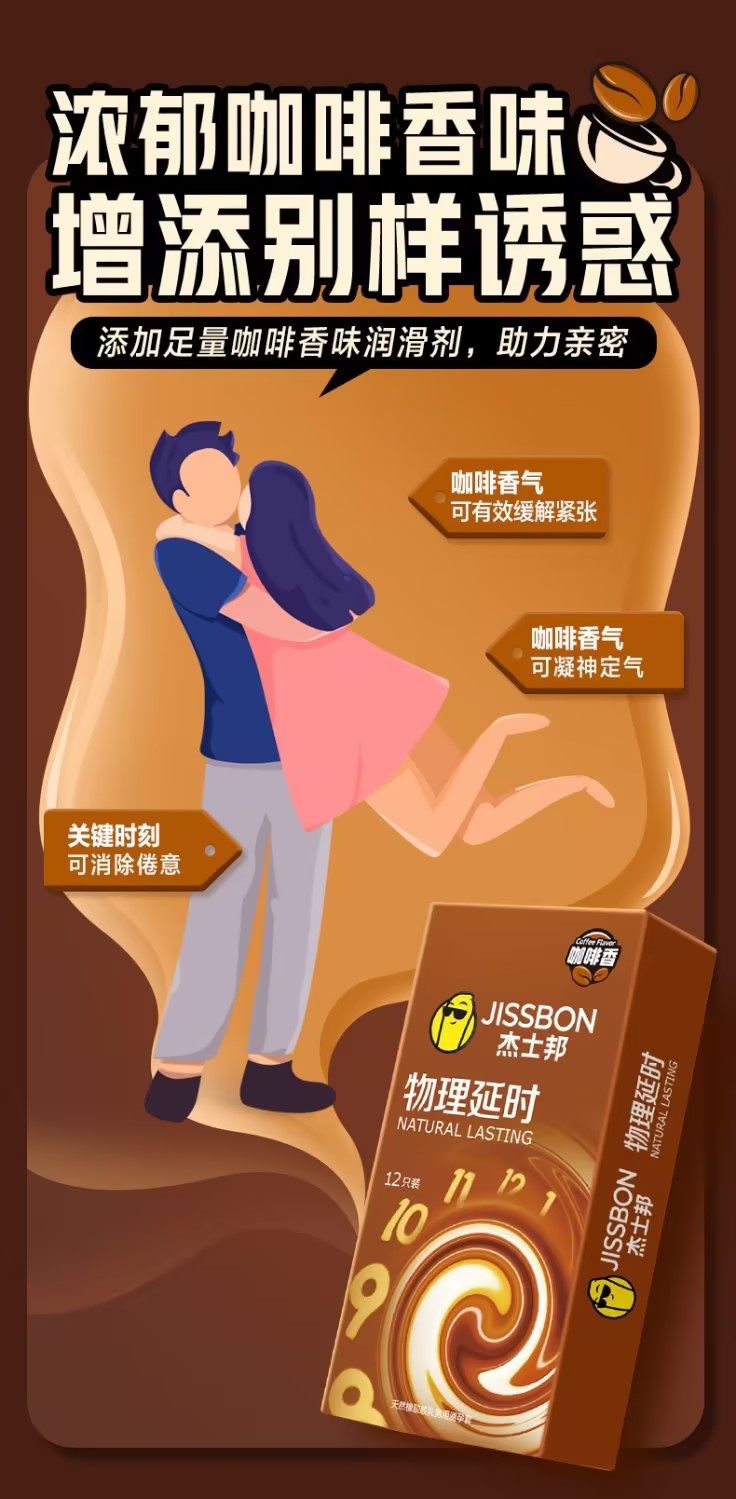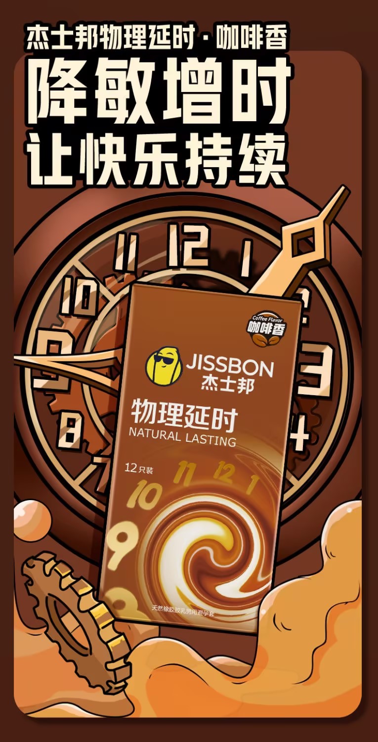 【头部加厚】杰士邦物理延时咖啡香避孕套3只装前段多倍持久锁精环安全套成人情趣套计生用品
