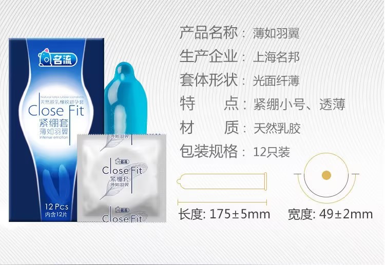 【紧致贴合】名流薄如羽翼紧绷安全套避孕套12只盒小号紧型套套