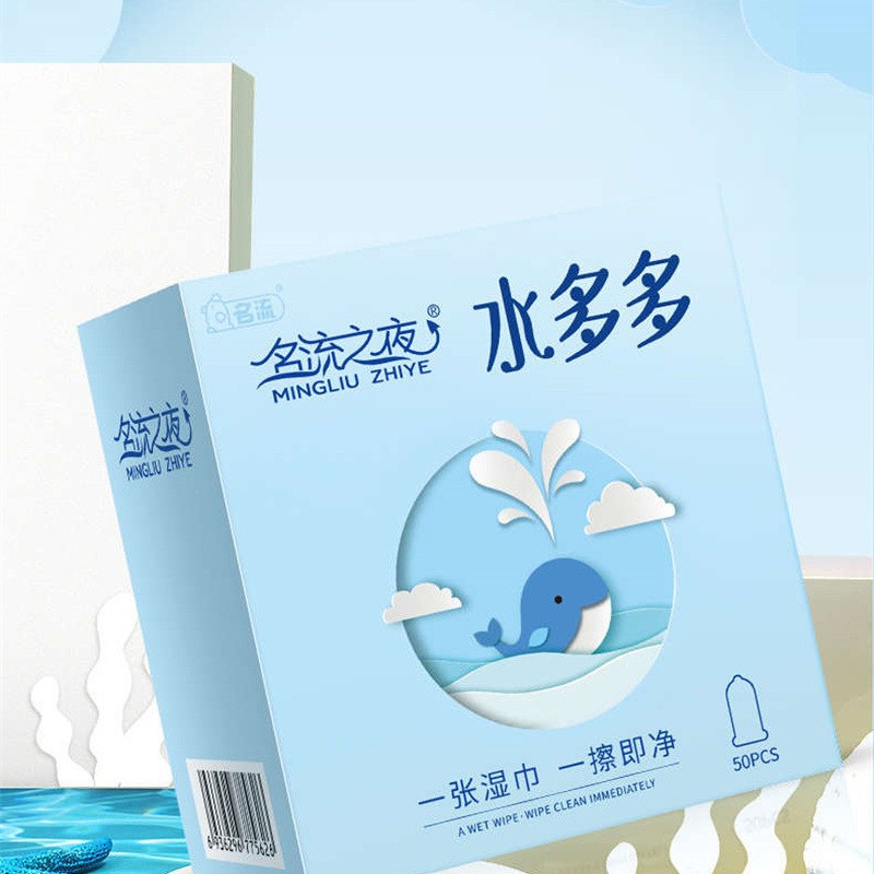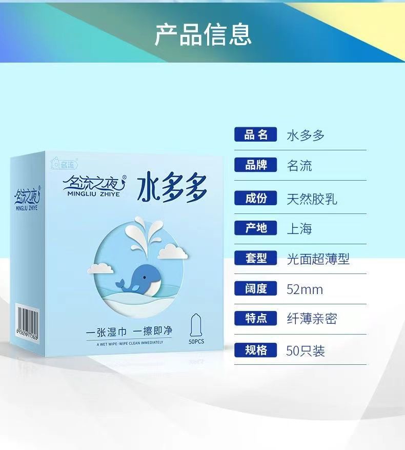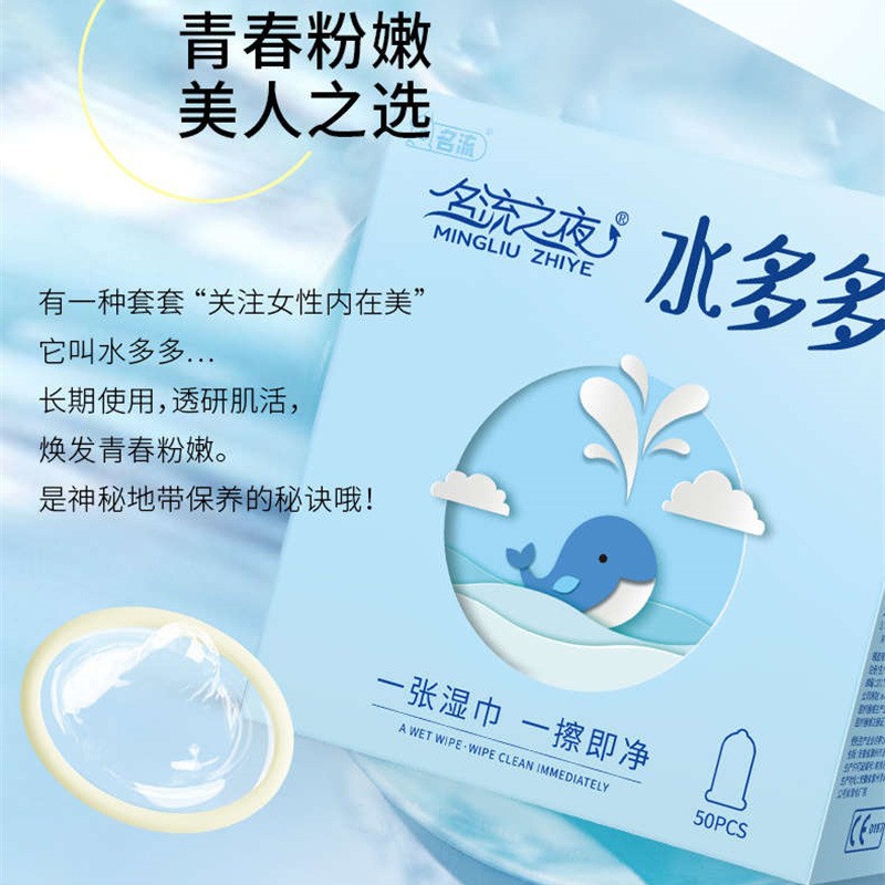 【越用越多水】名流之夜玻尿酸水多多大盒安全套夜场套超薄润滑避孕套50只盒小雨伞byt