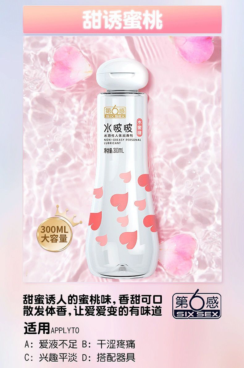 【果味可舔】杰士邦第六感水蜜桃味可舔润滑液水啵啵大容量水溶性润滑剂300ml人体润滑油