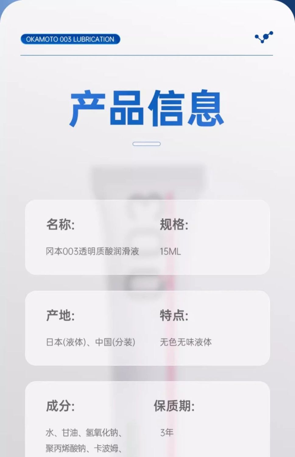 【水溶免洗】冈本003透明质酸润滑液15ml人体润滑油润滑剂成人情趣用品