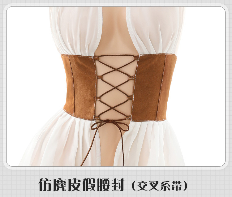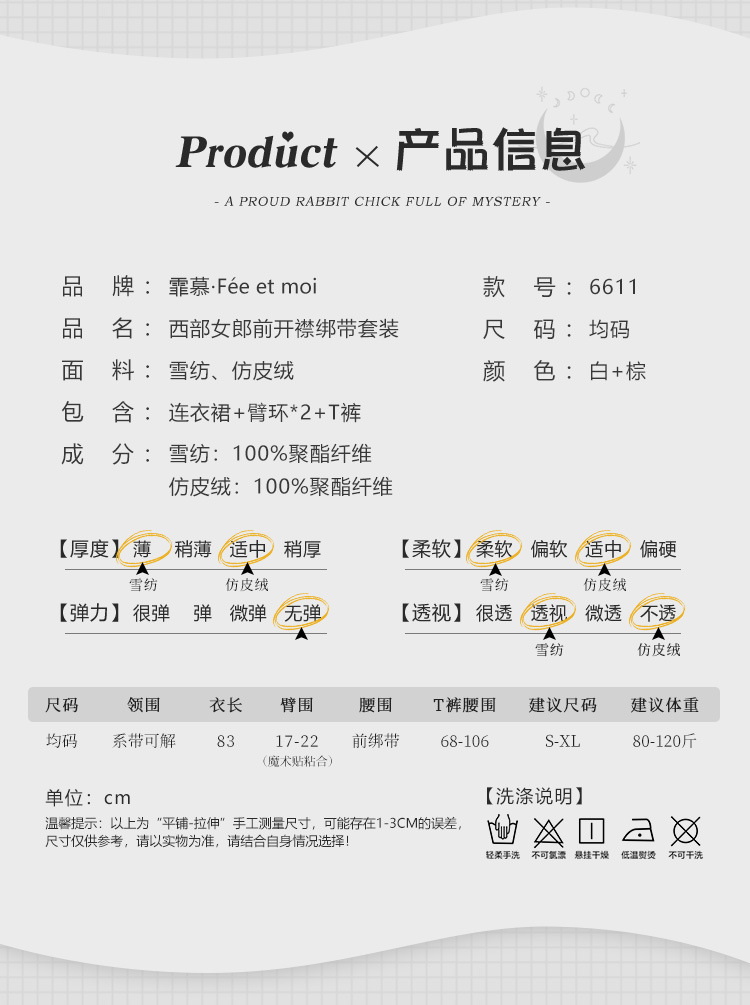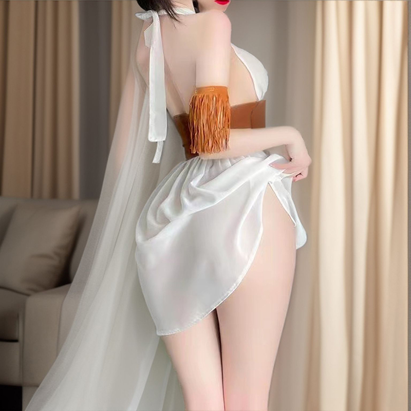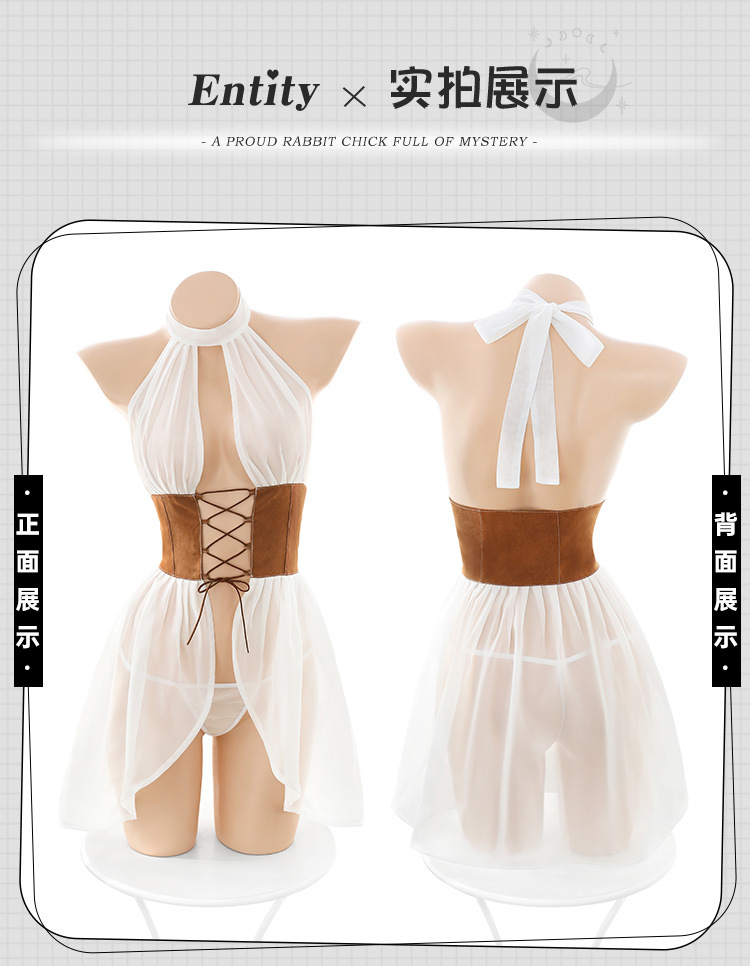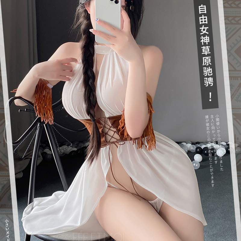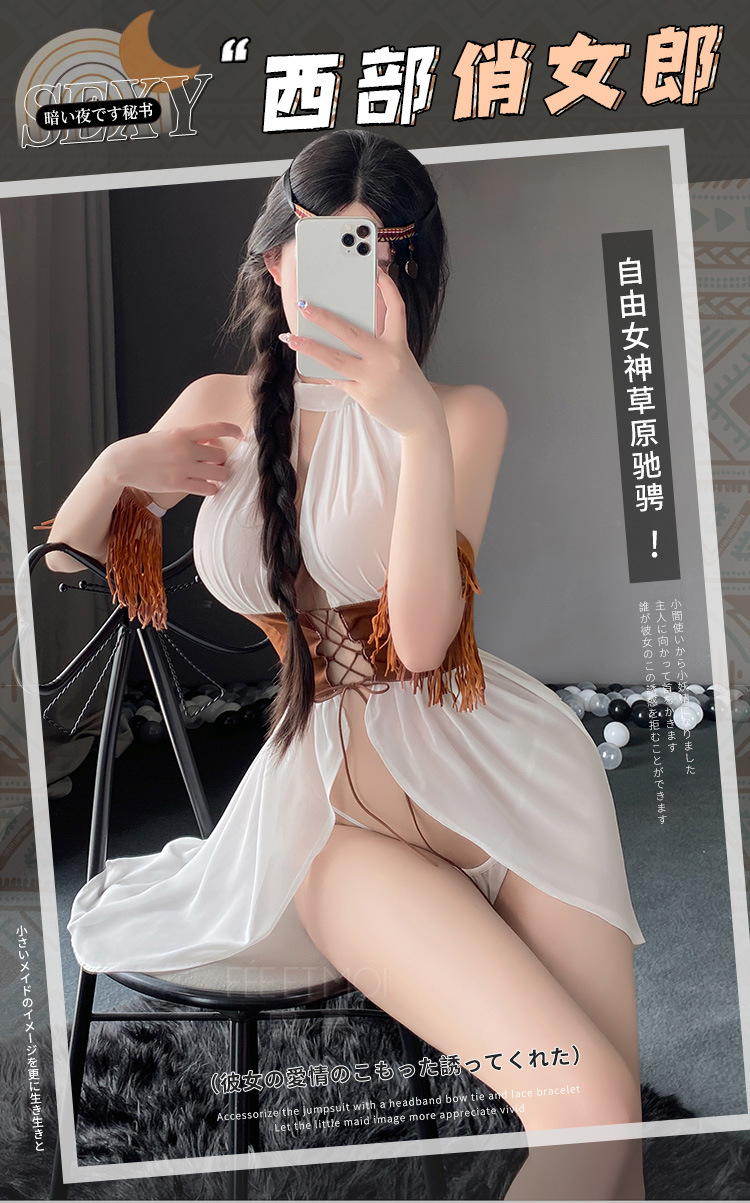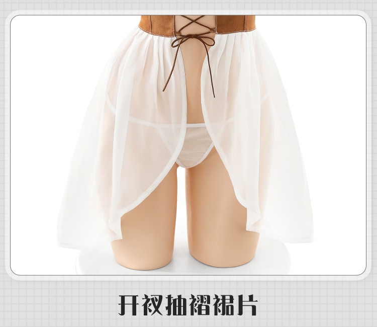 【纯情女神】霏慕 纯情诱惑抽褶裙摆情趣内衣西部女郎前开襟绑带套装性感制服 6611