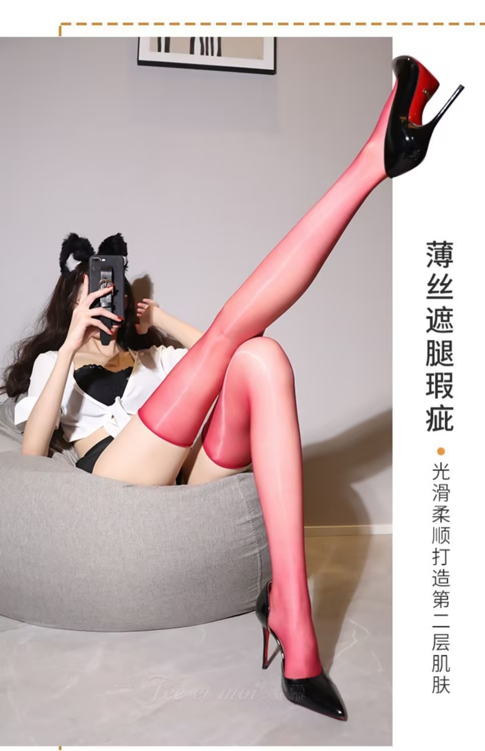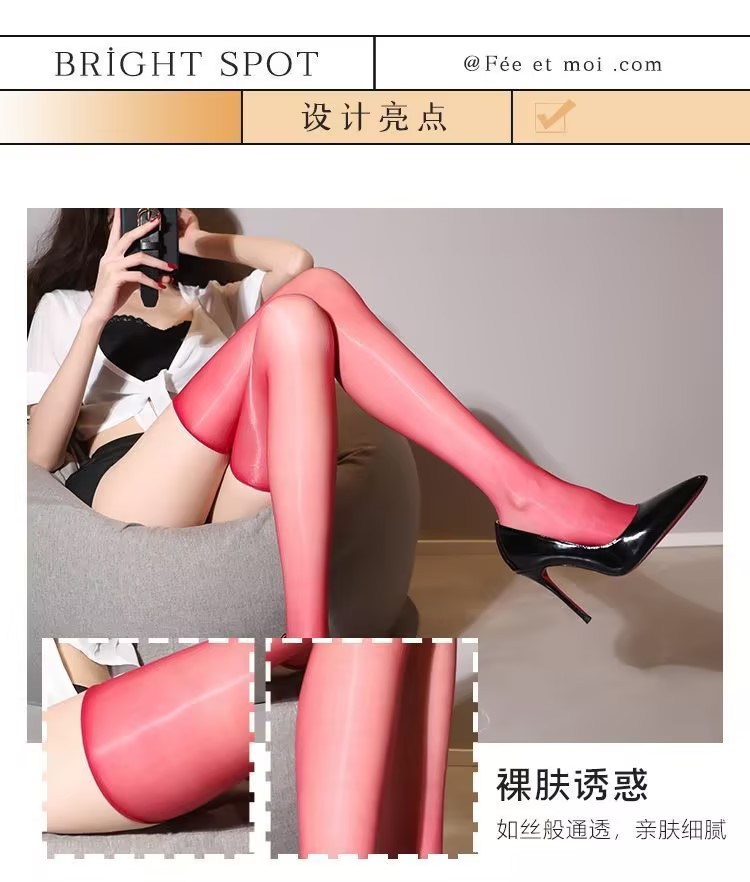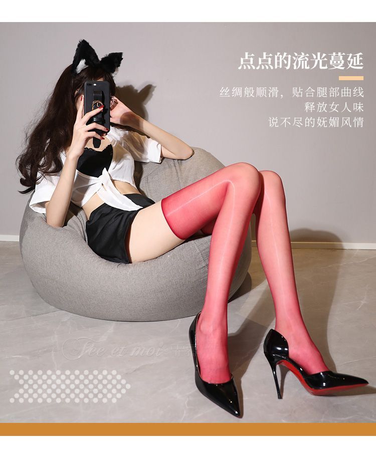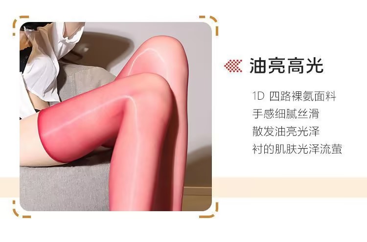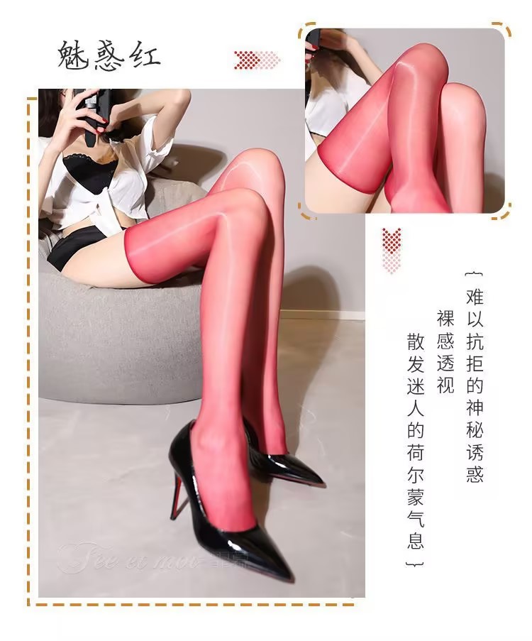 超薄油光红色美腿诱惑性感无边长筒过膝袜情趣内衣丝袜成人用品7218