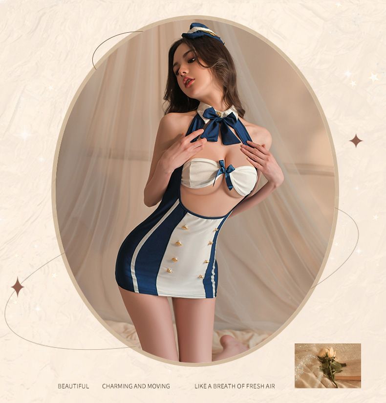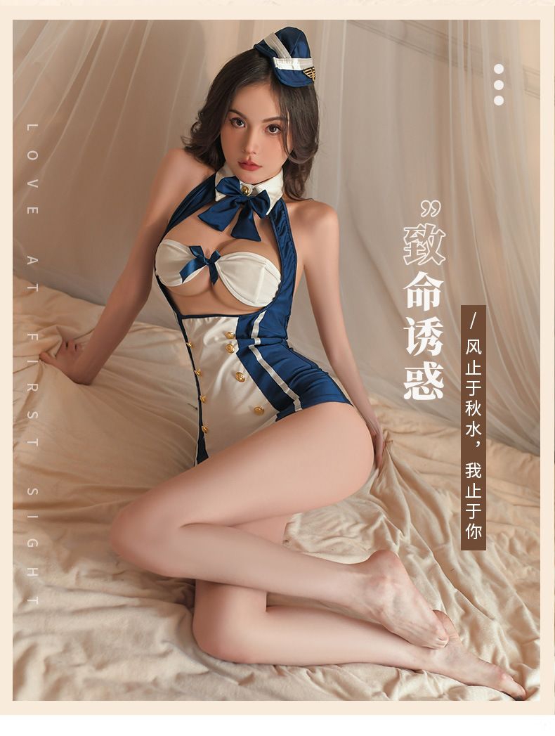 霏慕情趣内衣 诱惑 制服浪漫航线包臀空姐套装激情衣服6992(蓝白)