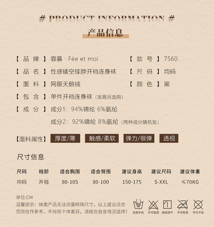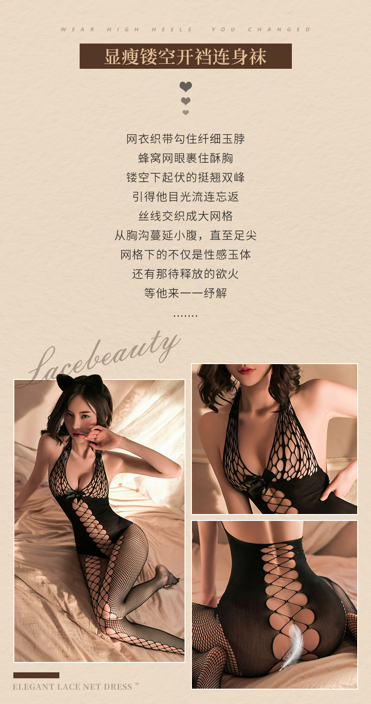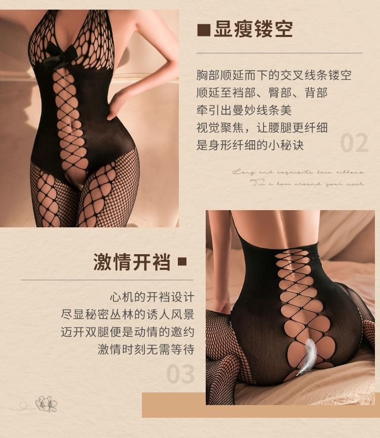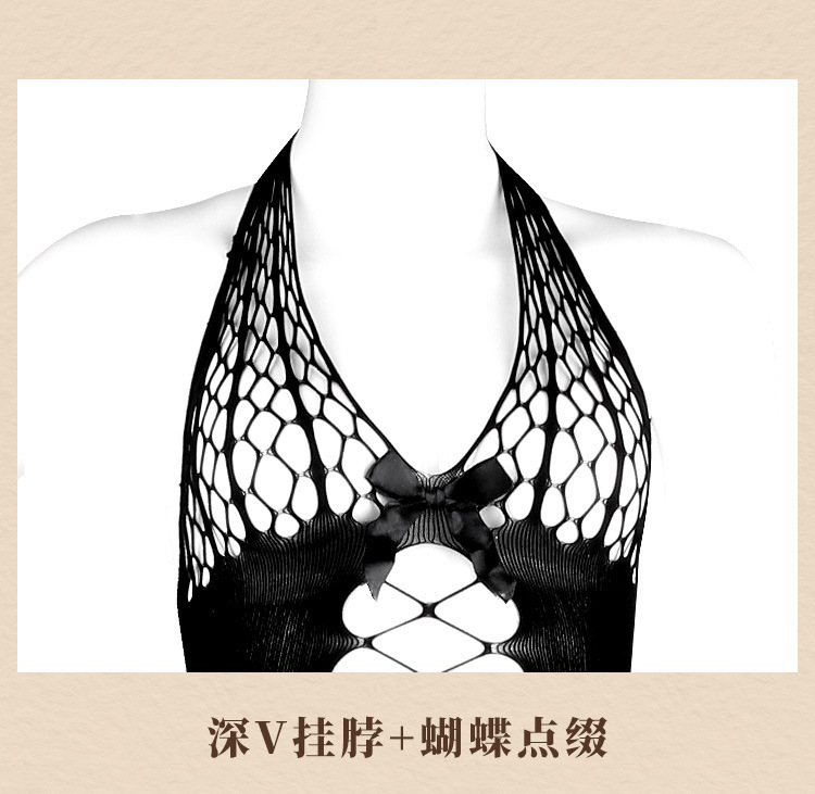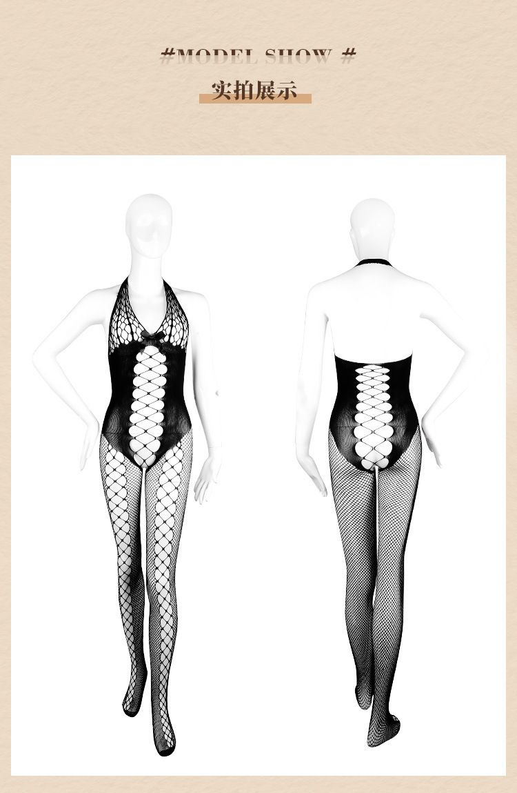 霏慕情趣内衣女士透视镂空挂脖裸背深V开档性感连身袜7560