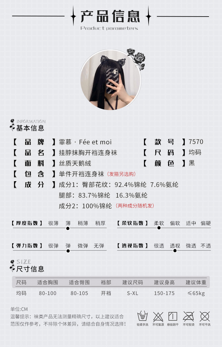 霏慕情趣内衣女式蕾丝制服性感抹胸开档连身袜情趣丝袜7570