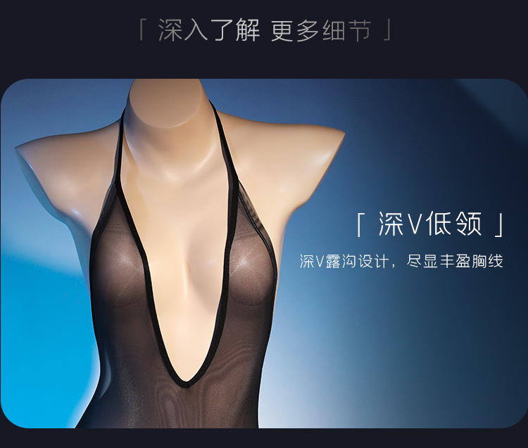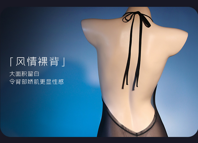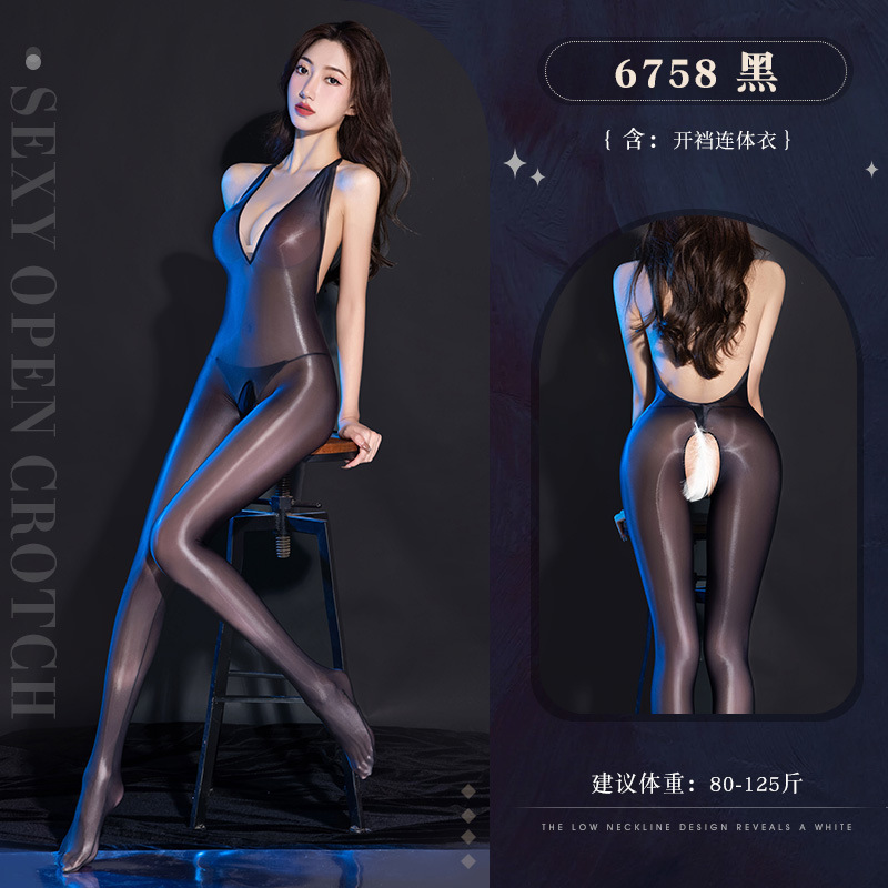 霏慕深V薄透油亮开裆连体衣黑色连体丝袜紧身情趣内衣激情制服诱惑6758