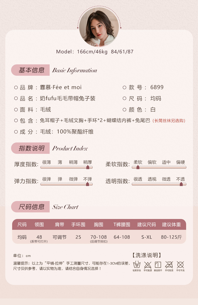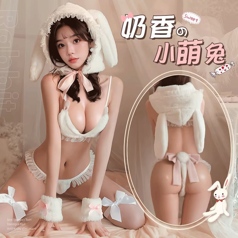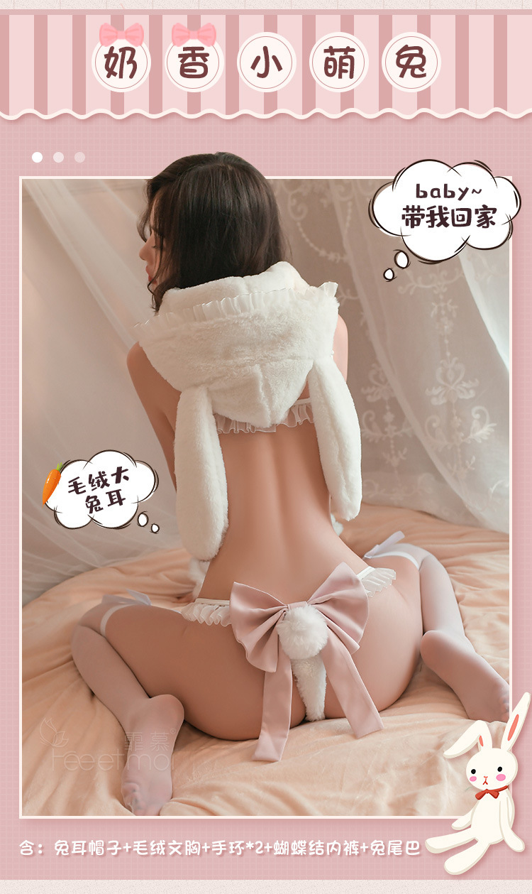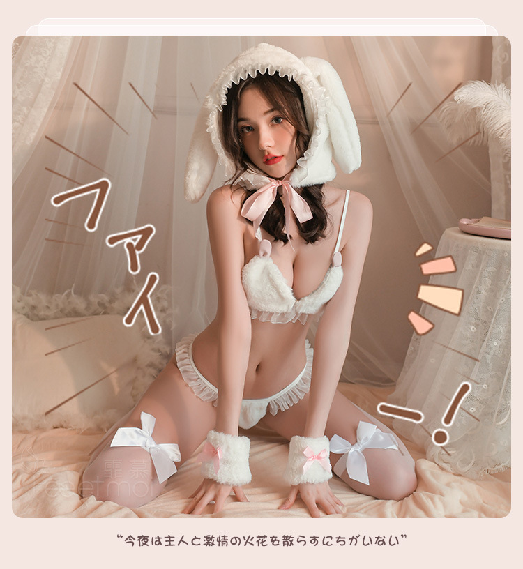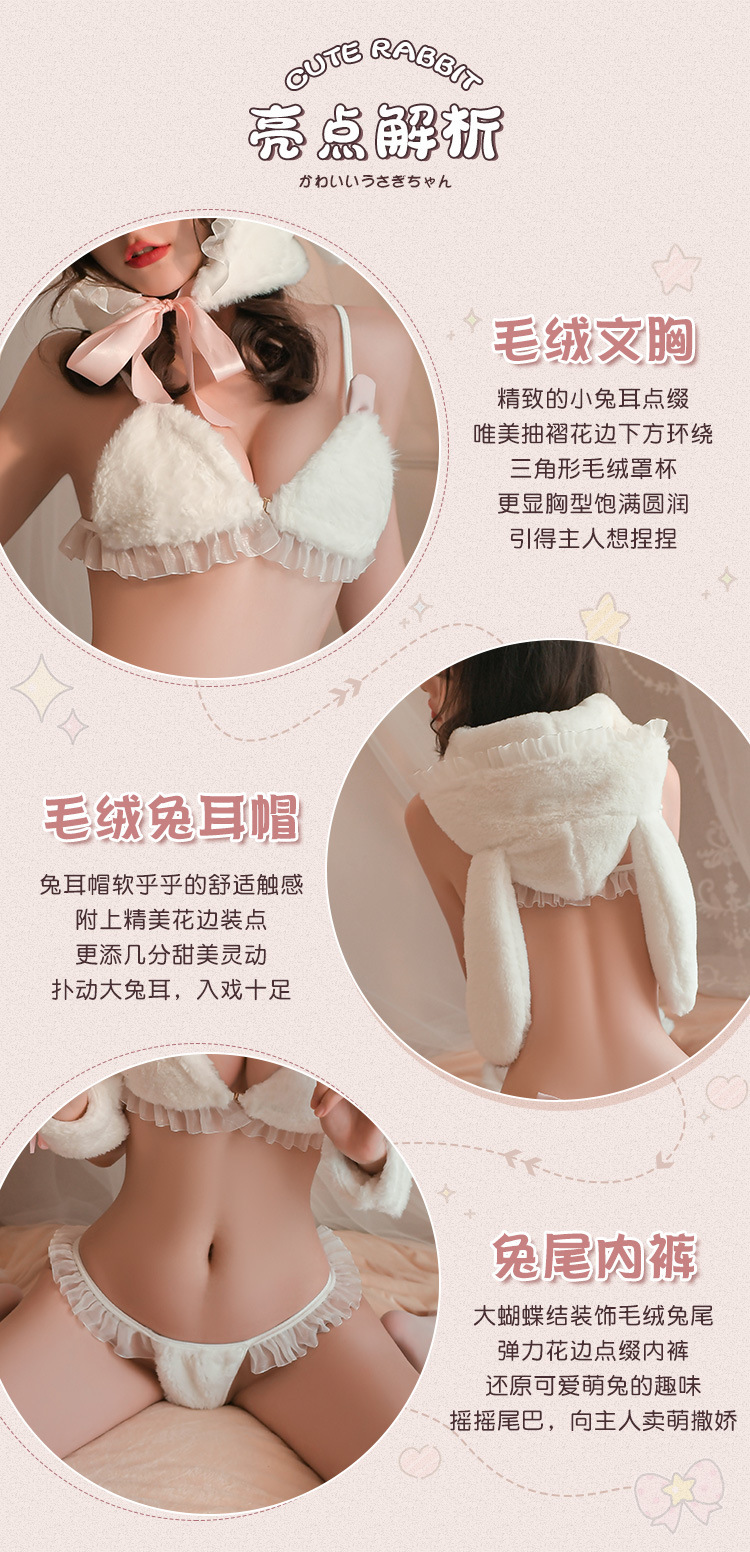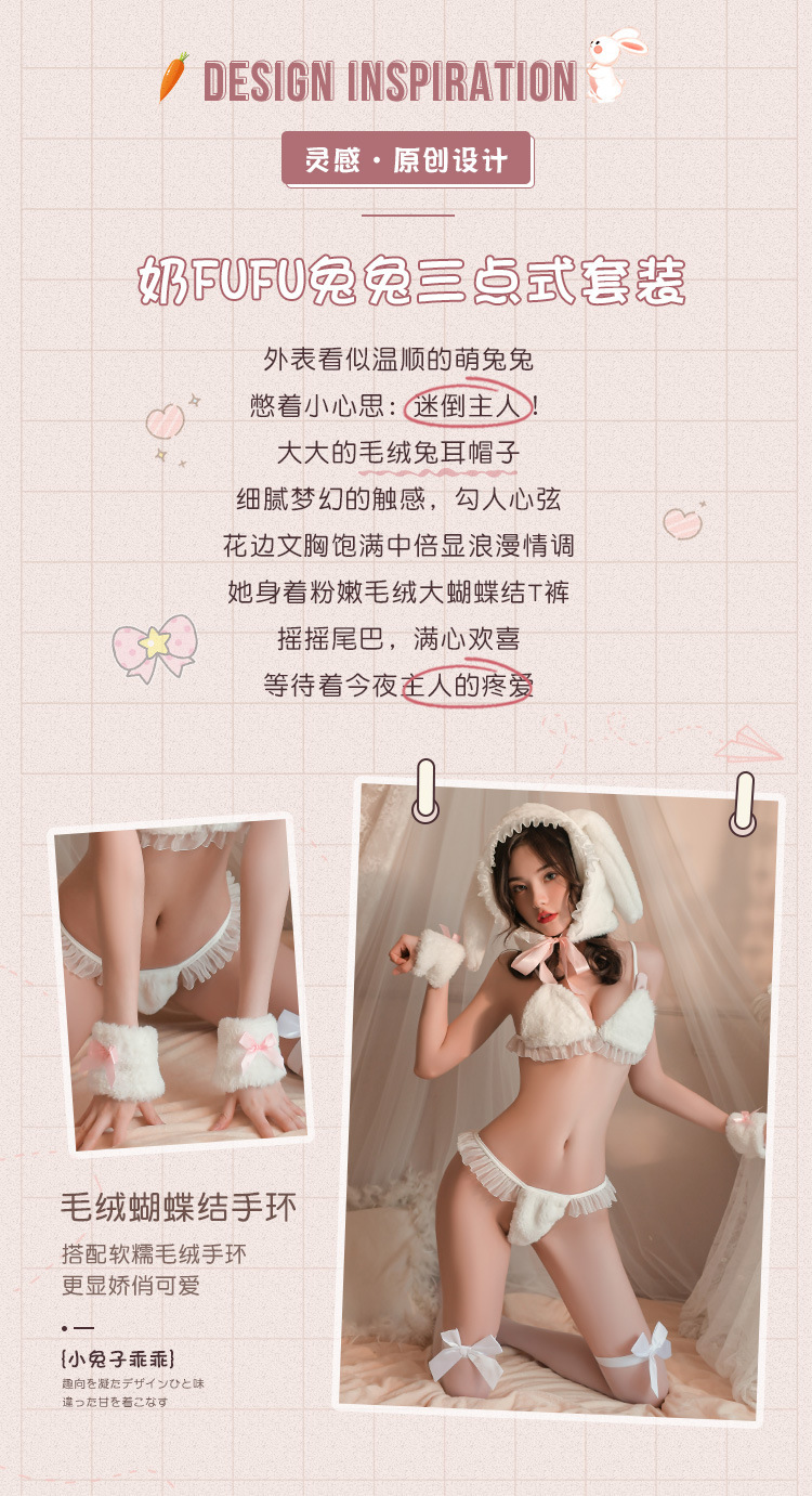 可爱萌兔fufu毛毛带帽兔子装情趣内衣性感情趣制服激情清纯可爱套装6899