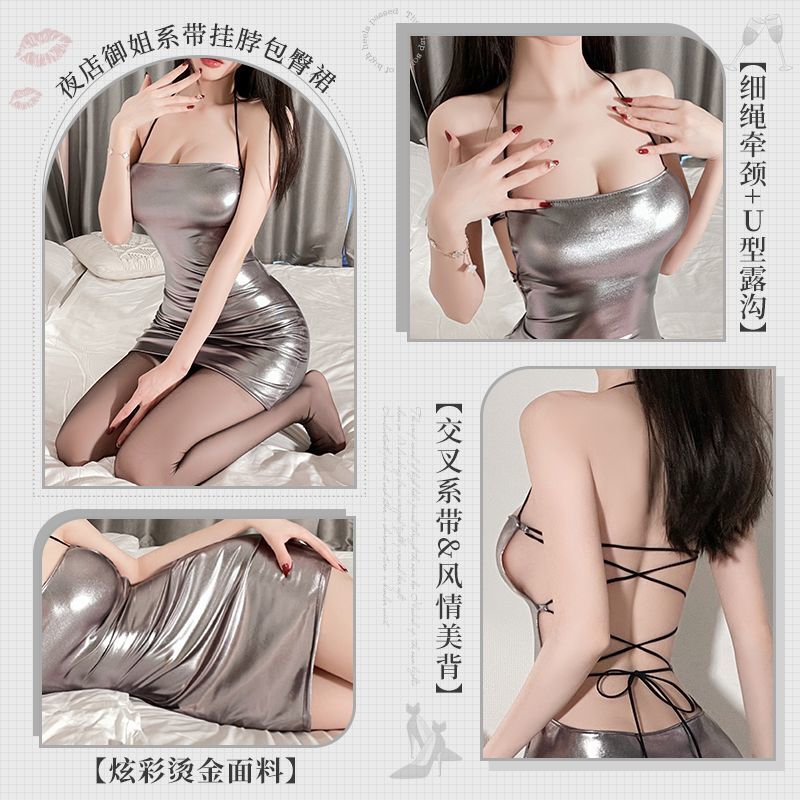 夜店御姐系带挂脖包臀裙紧身包臀内衣性感制服激情情趣内衣制服6734